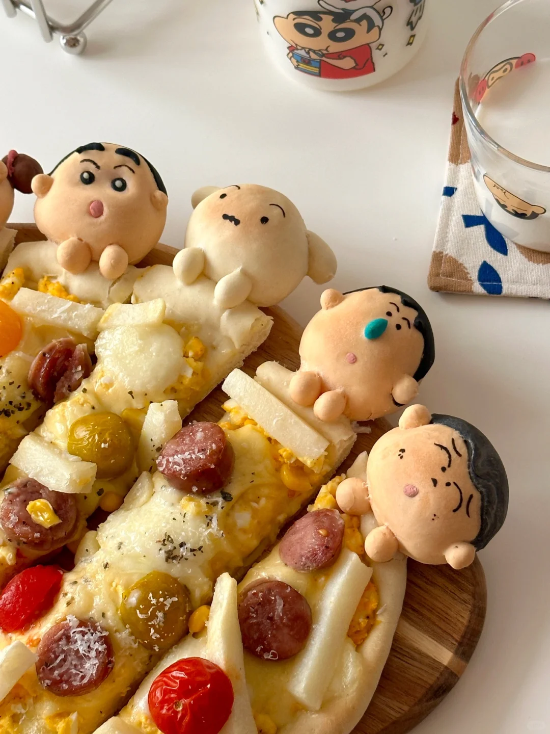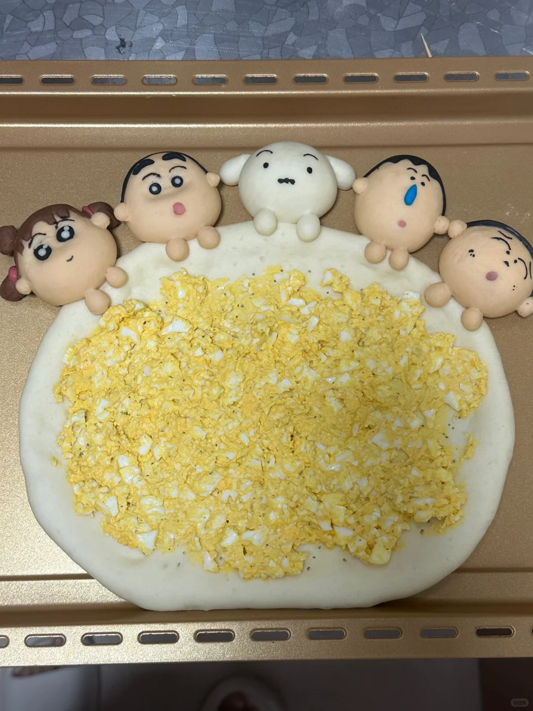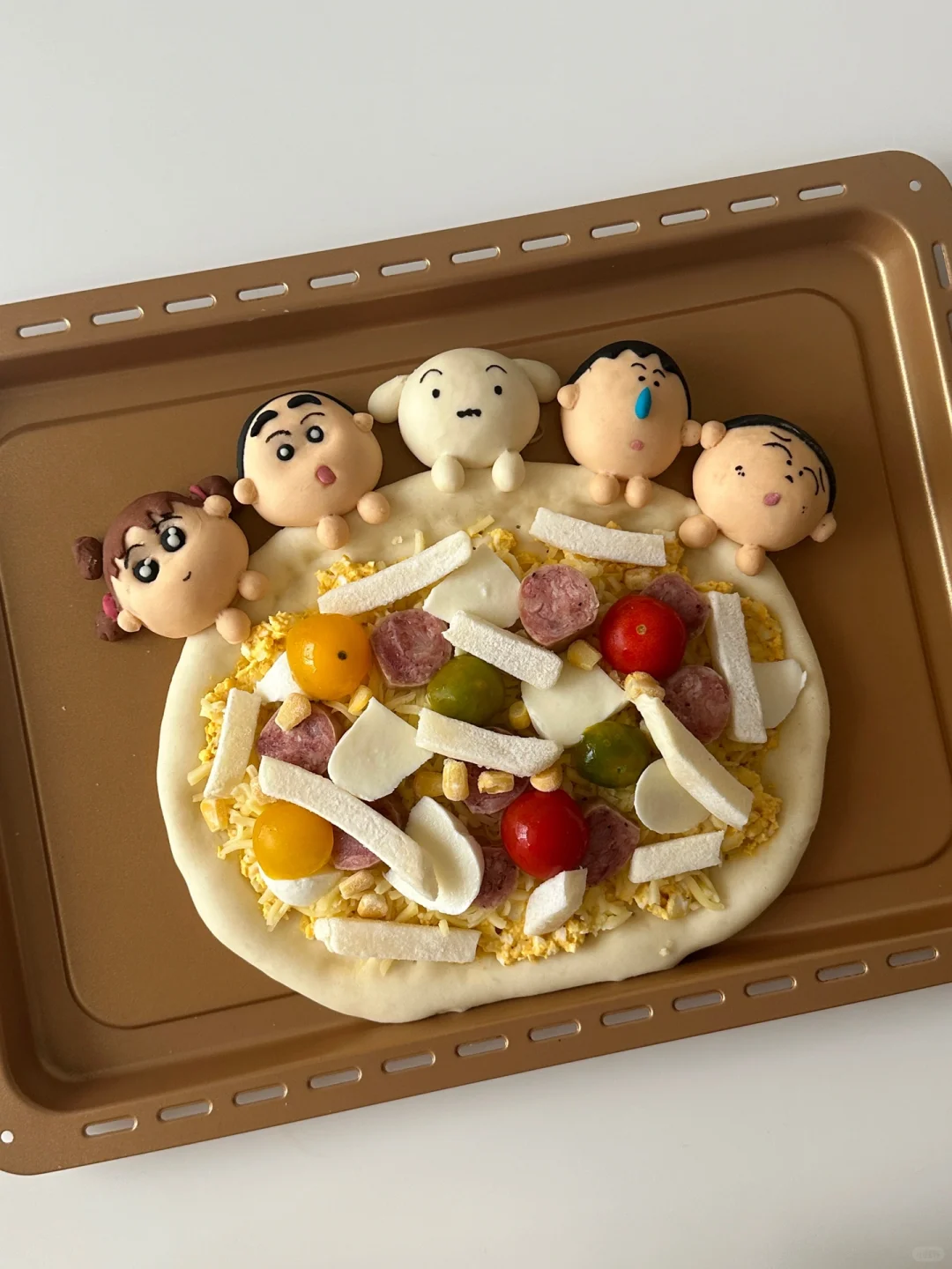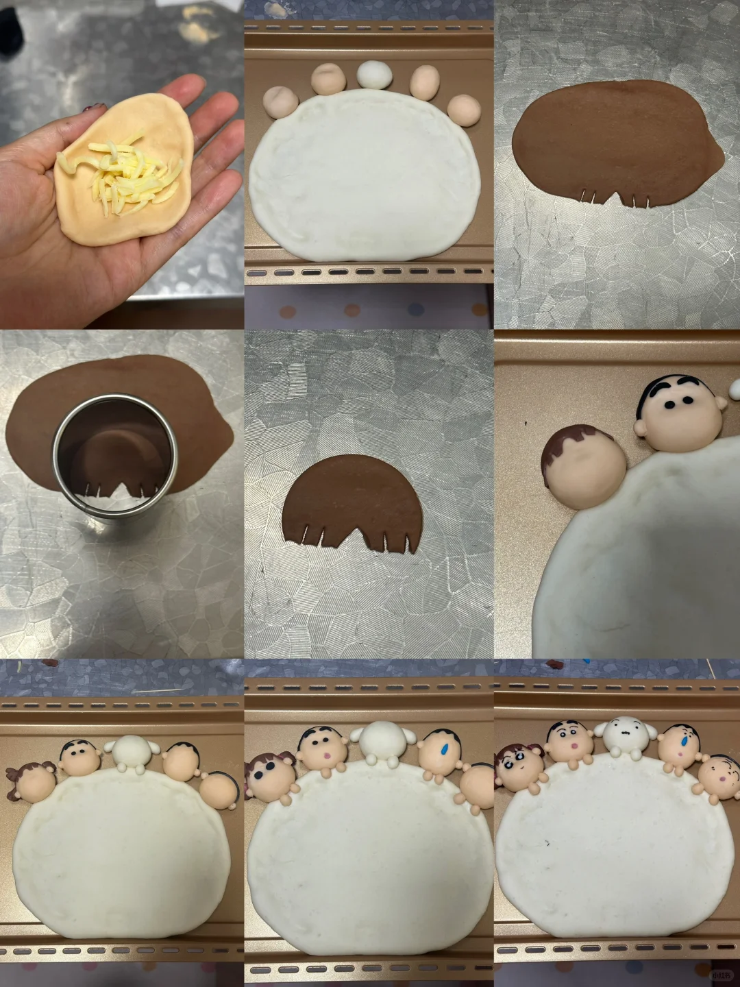 ③分出150g制作小新和他的朋友们造型,剩余面团做披萨饼底