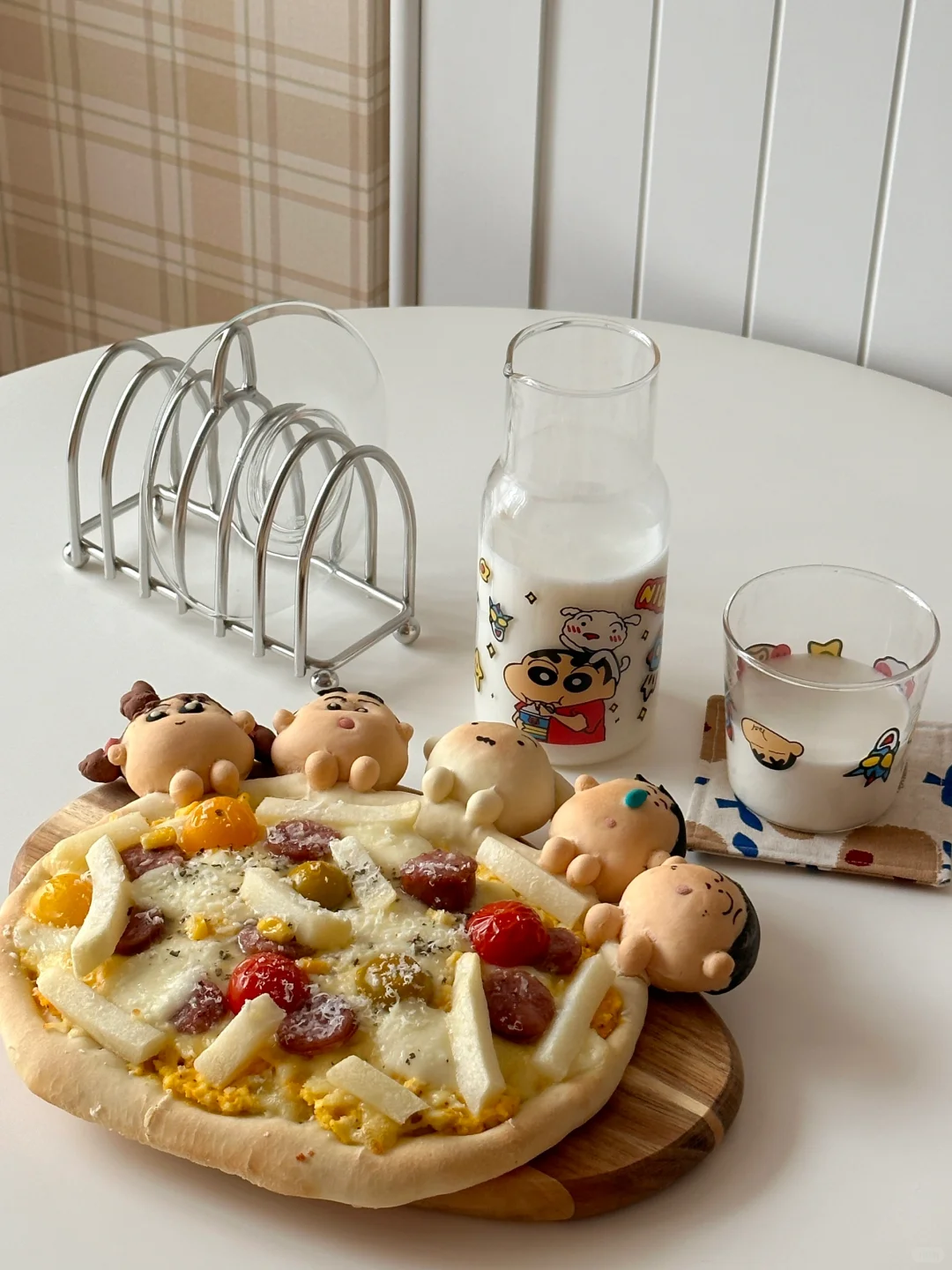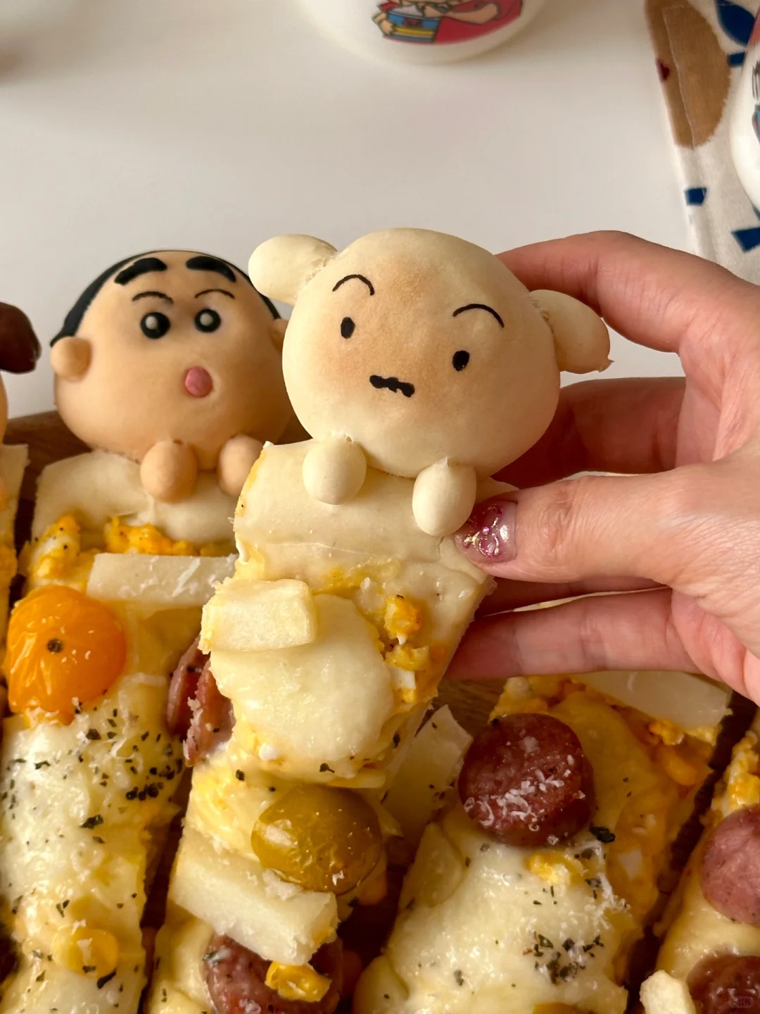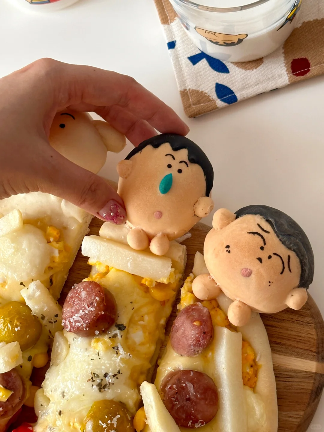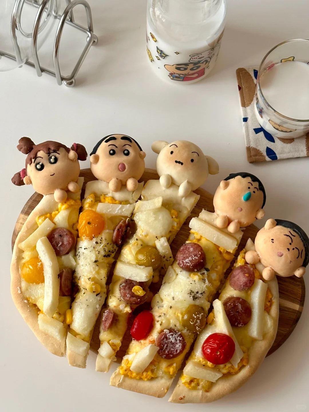 ③分出150g制作小新和他的朋友们造型,剩余面团做披萨饼底