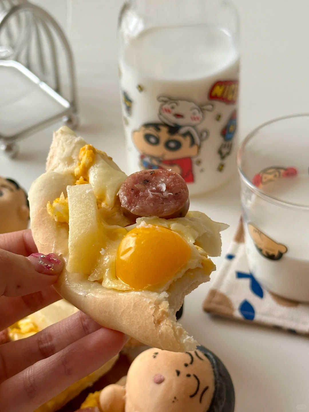 两个鸡蛋煮熟,加入黑椒海盐,沙拉酱,压成泥就OK啦~