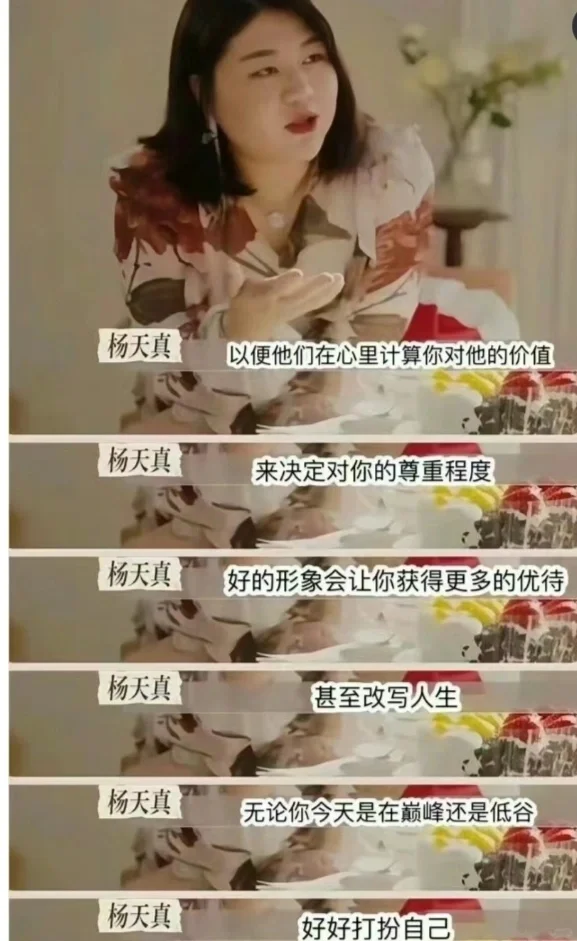 杨天真:先敬罗衣后敬人。人生最大的捷径就是打扮自己。