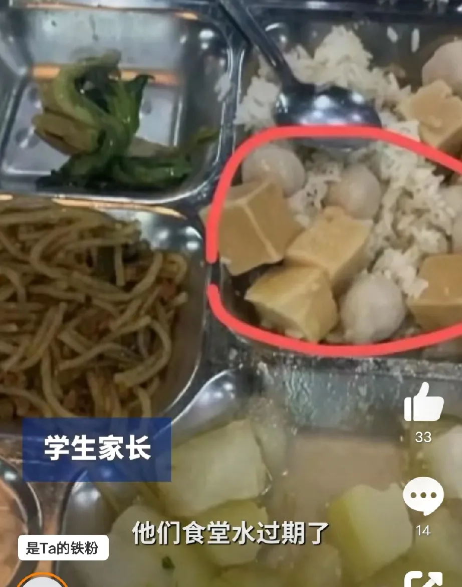 6月13日,四川内江。有数名家长反映内江天立学校食堂给孩子吃过期食物、过期的饮用水、卫生条件堪忧,且老师和学生食物不同。 学校回应:家长发布视频有拼接,反映的问题学校高度重视,正在整改…… 让人啼笑皆非的是:就在去年的4月份,当地区委主要领导还专门针对“食品安全问题”把该学校作为重点走访调研对象,做出了重要指示…… 有当地网友评论:我之前记得有个天立的工作人员,经常发学校吃的多好,那的确老师吃的是好!!! 友友们,你们怎么看?
