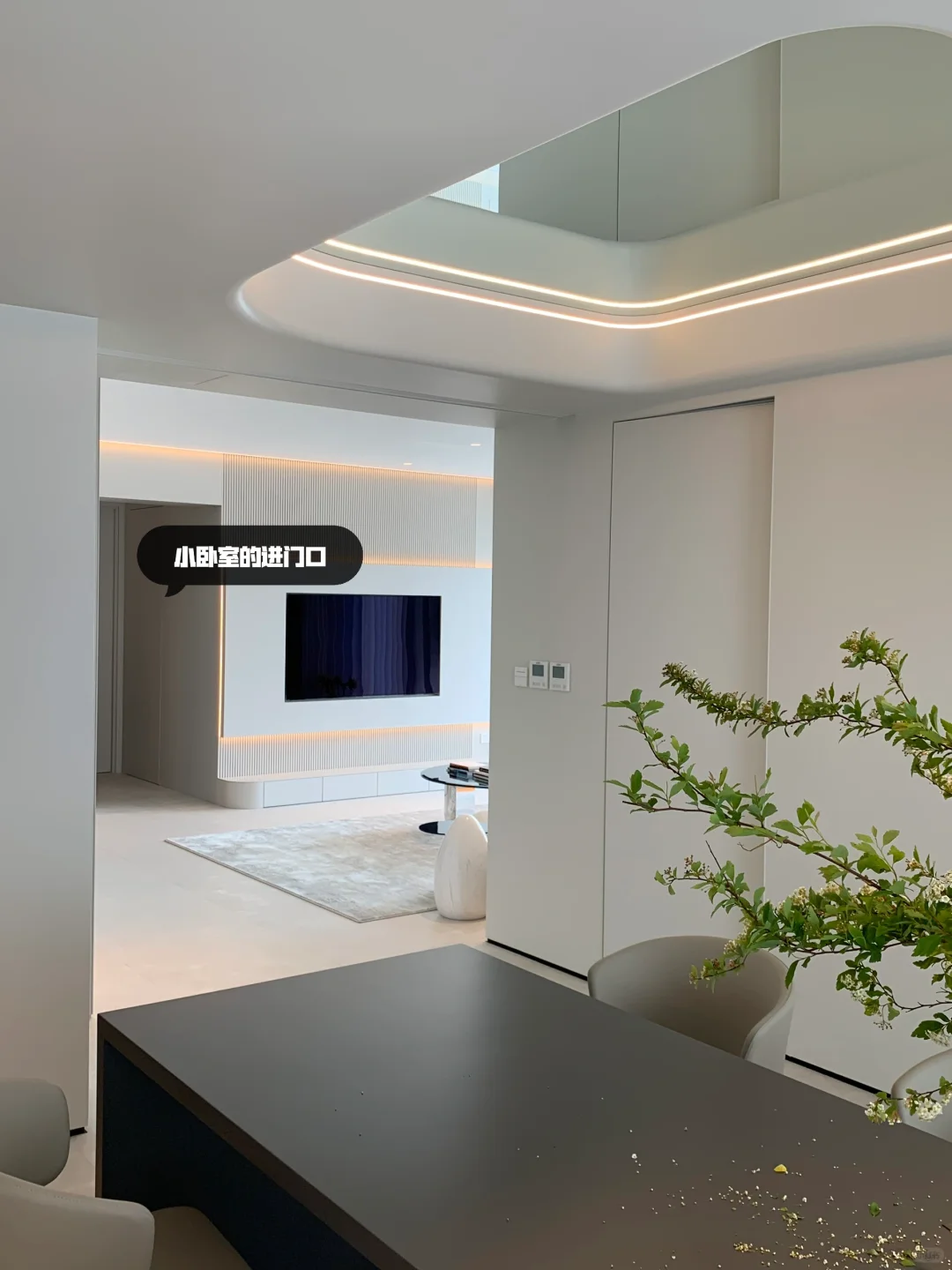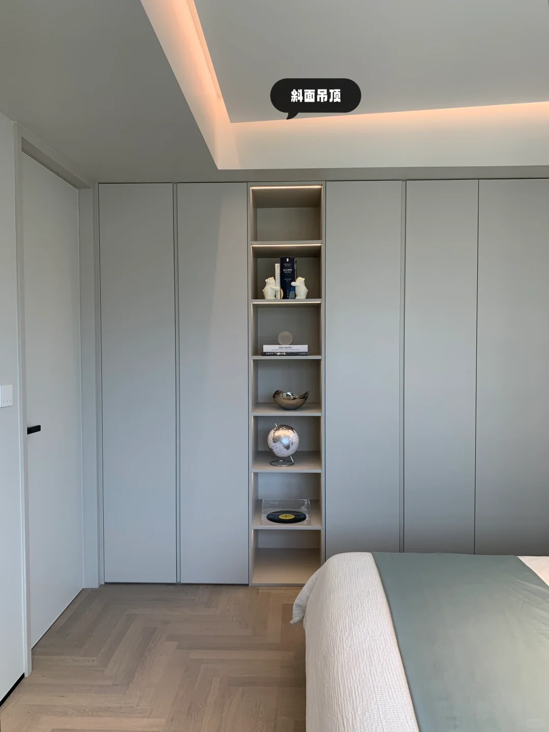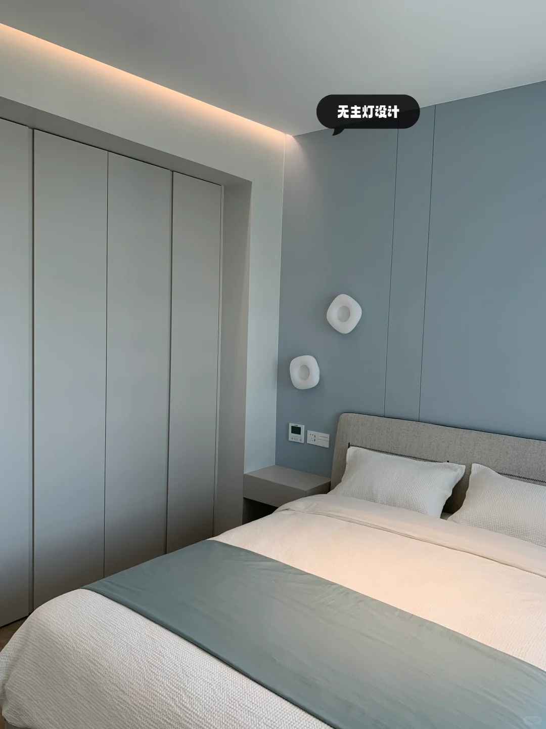 [向右R]首先多亏了这个无主灯设计,提升了整个卧室的高级感!无主灯确实显大显高级!