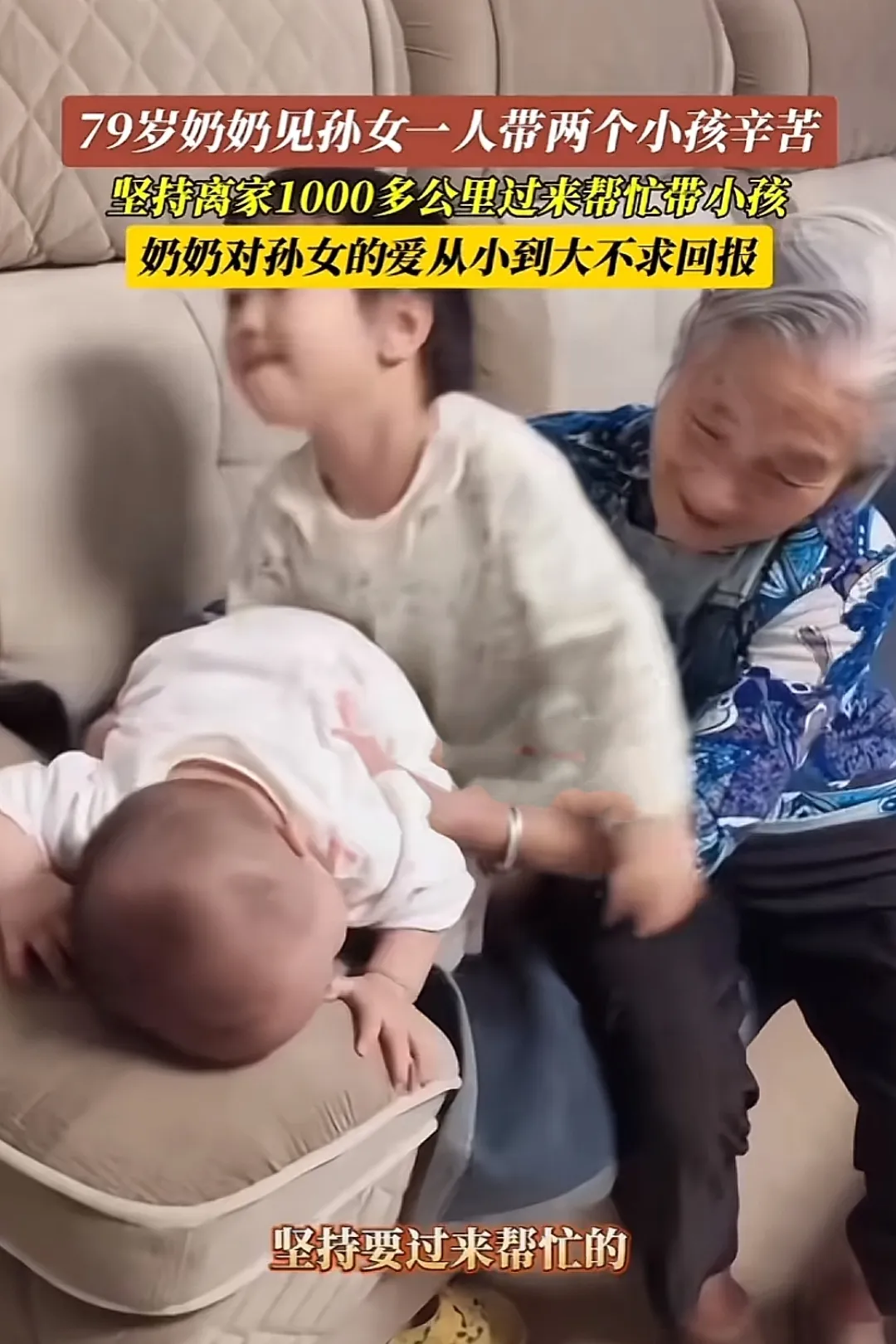 肇庆一女子,一个人在家,带两个孩子。谁曾想,79岁的奶奶怕她太辛苦,坚持离家1000多公里,帮女子带小孩。