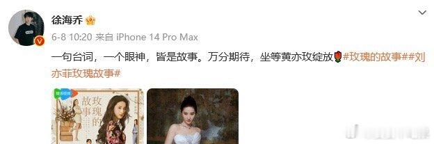 #刘亦菲[超话]##徐海乔披哥打call亲友团是刘亦菲#我真的很喜欢你们两个人的关系,而且我觉得能够再一次合作,其实也是不一样的,希望能够好好的