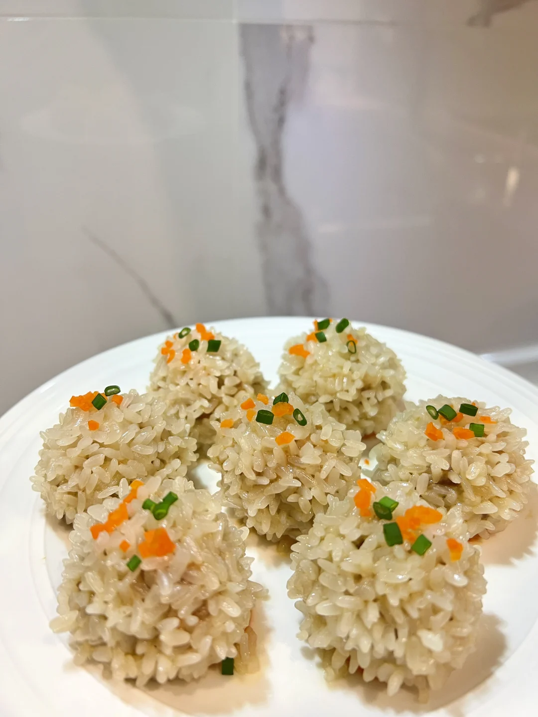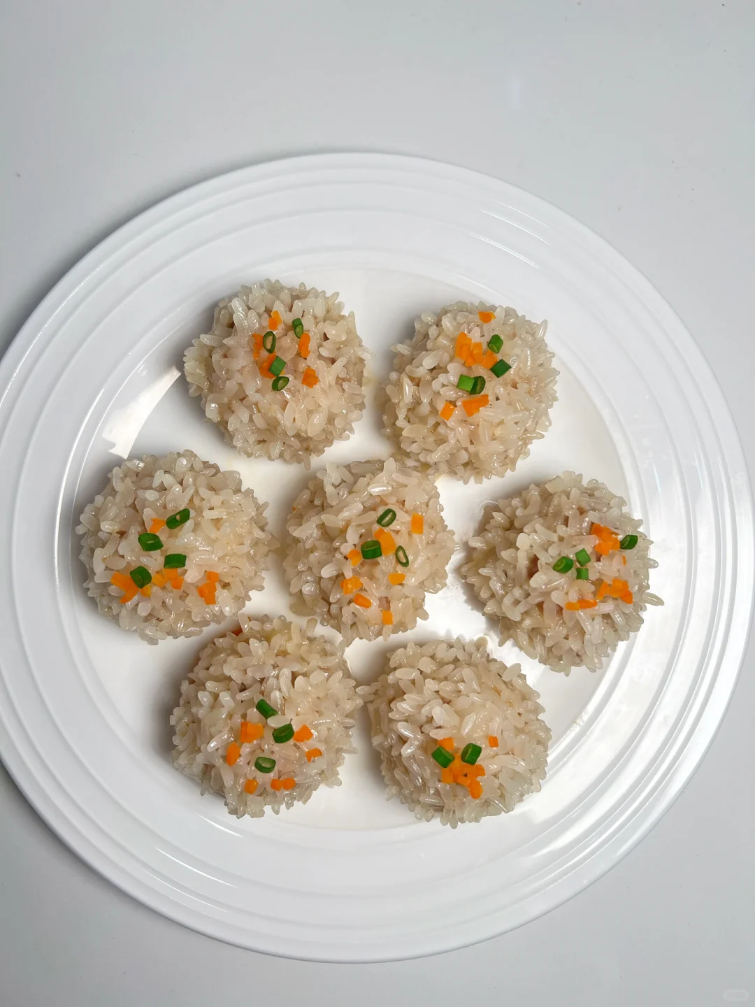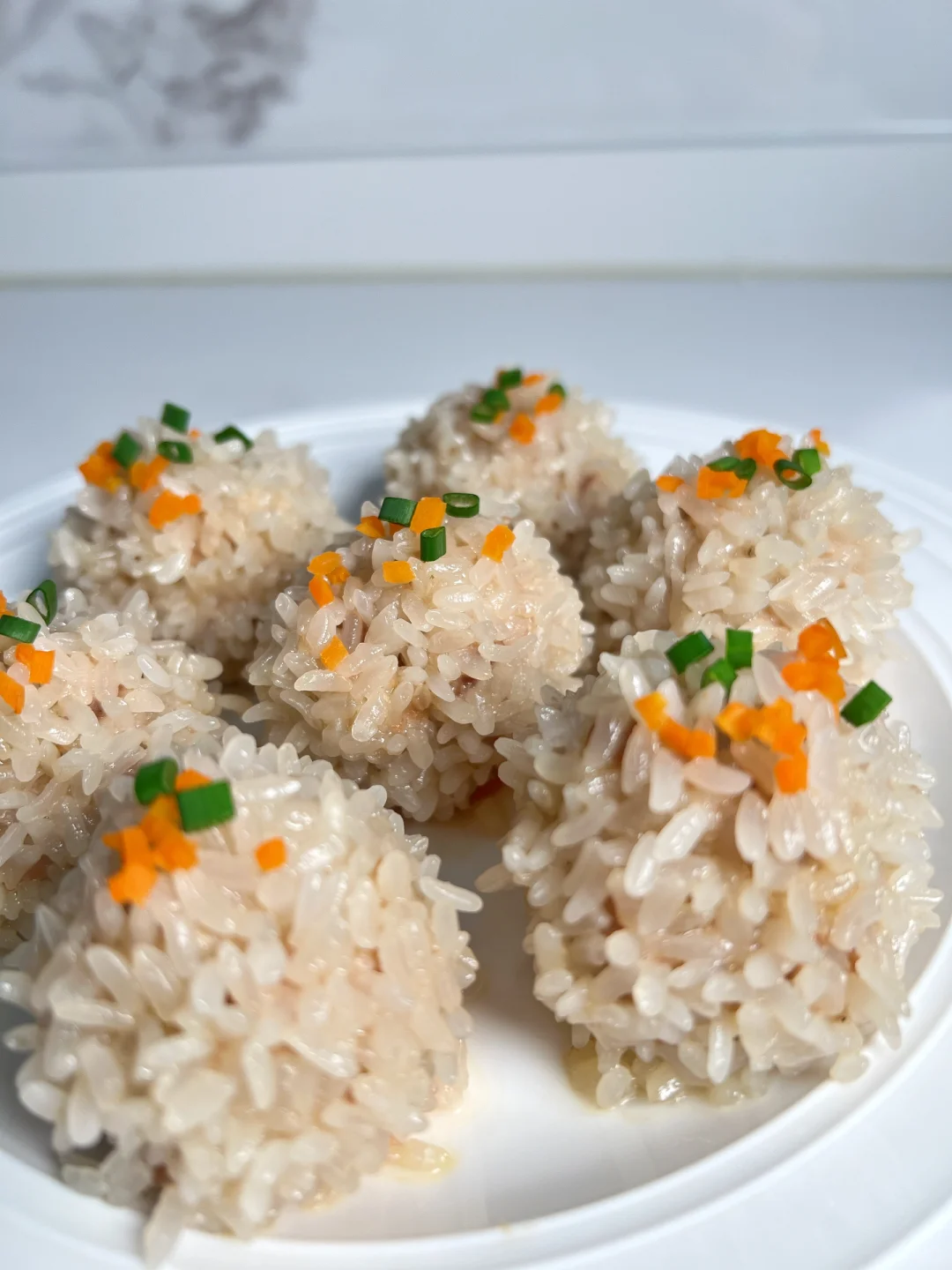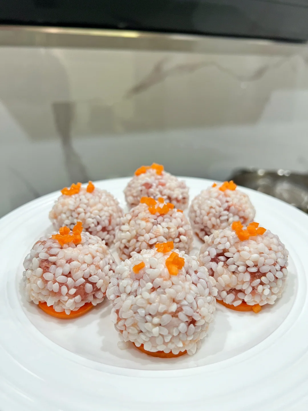 寓意团圆做法又简单的糯米珍珠丸子,绝对是年夜饭必备菜!蒸一蒸就搞定,完全不需要技术含量。 👩🍳食材: 1⃣️糯米适量 2⃣️半肥瘦猪肉适量 3⃣️胡萝卜适量 🫕做法: 1⃣️糯米提前2小时泡发,沥干水分备用。 2⃣️猪肉剁成肉末,加入少许姜蓉,酱油,盐,糖,淀粉,朝一个方向搅拌上劲。 3⃣️碟子垫上胡萝卜片,肉丸滚上糯米后,蒸20分钟即可。 ❗️小贴士: 1⃣️用细长的糯米蒸出来会更好看。 2⃣️肉末里加一些马蹄丁或莲藕丁口感会更丰富。