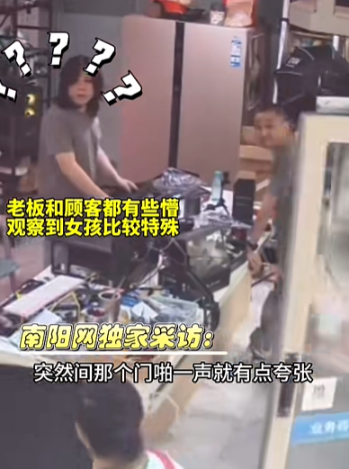老板当时正在店里修电脑,店里很安静,突然门被狠狠推开,打开的方式有点夸张,这要是用力过猛,玻璃门都会震碎!老板此时很火大,他抬头看了一下女孩,瞬间理解她为什么会这样,所以就没有理她,只是轻声喊了声“你好?”女孩挠了挠头,说自己看一下!