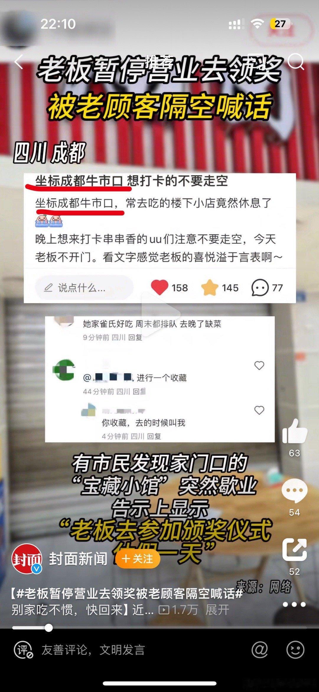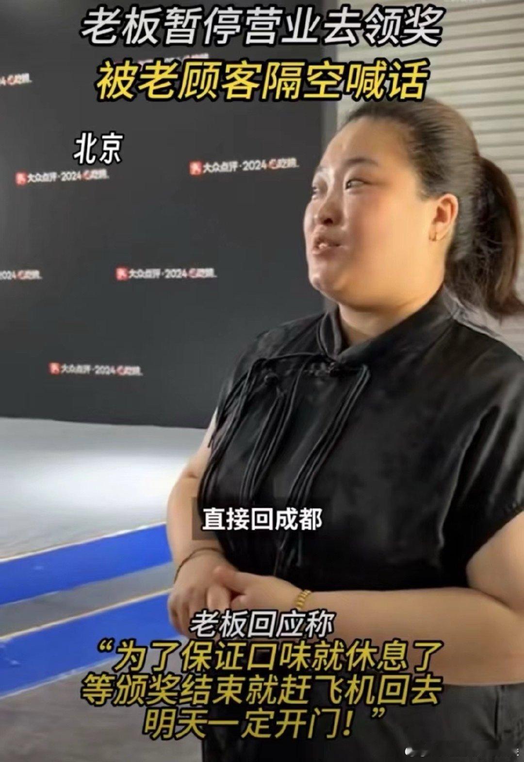 #老板暂停营业去领奖被老顾客隔空喊话#对于这样的暂停营业去领奖,老板的行为也是非常给力了,老顾客你是不是也在羡慕老板呢。