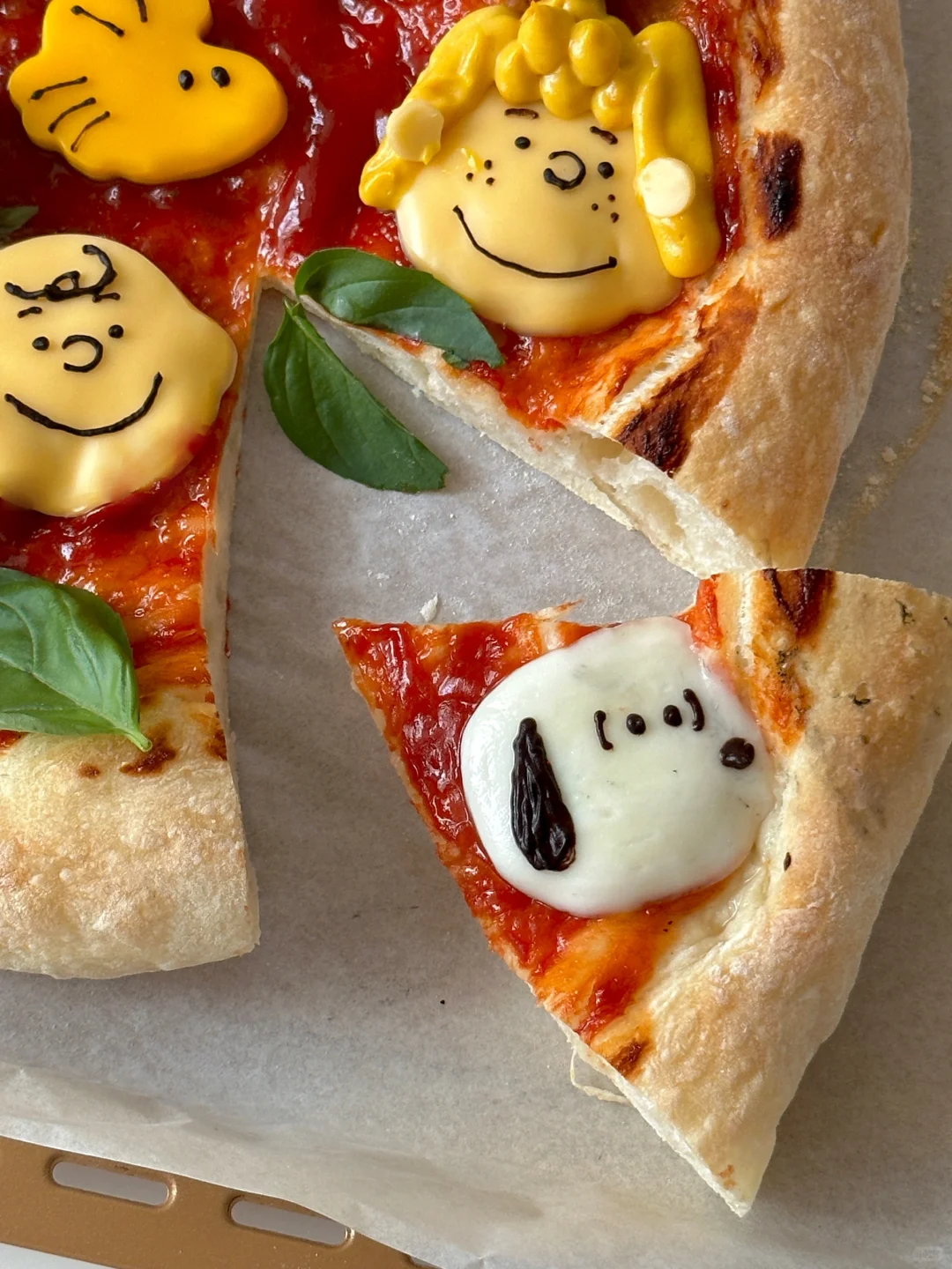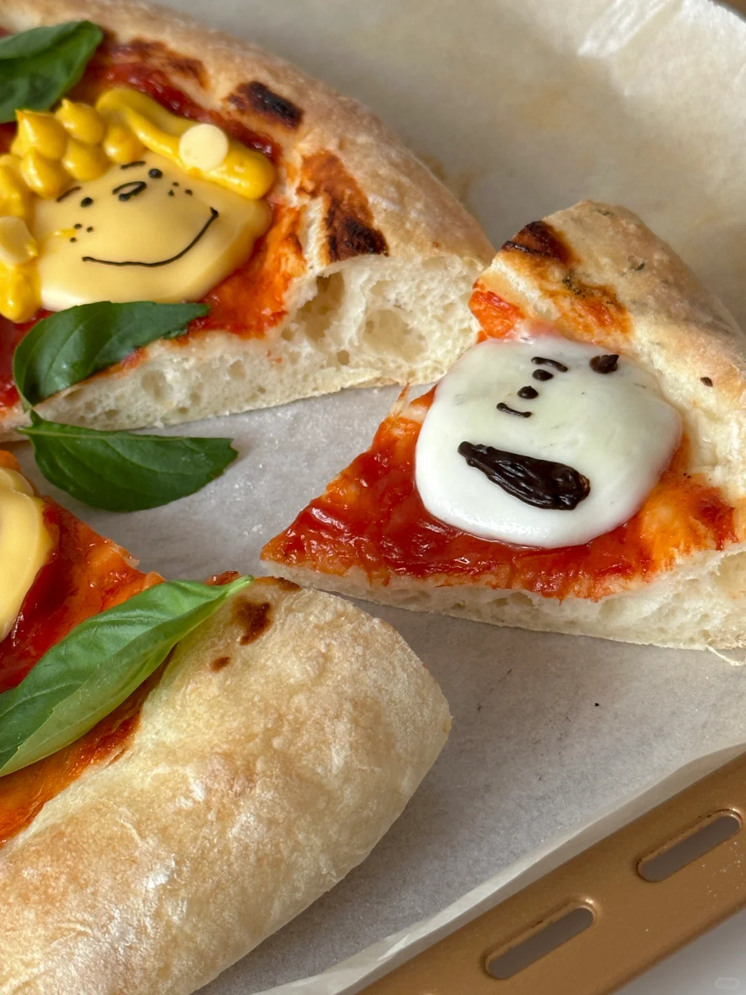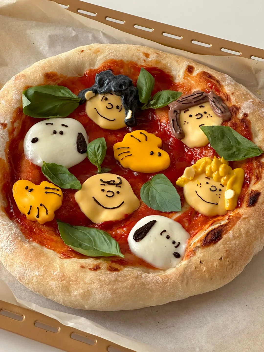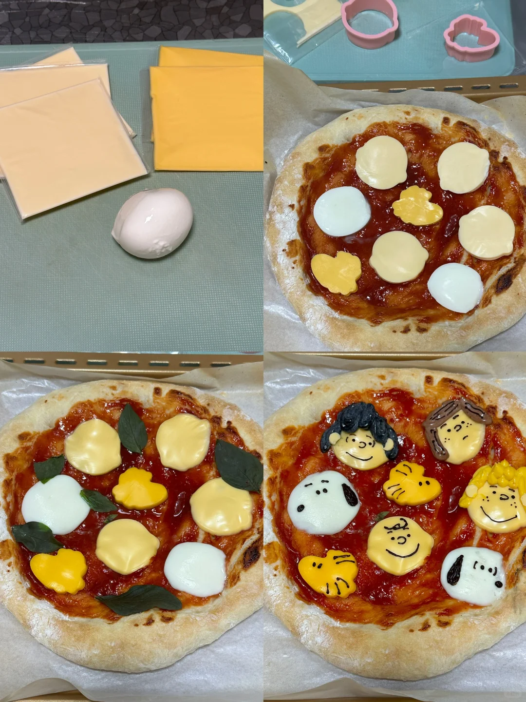 用家里不同颜色的芝士🧀,做出可爱的花生家族朋友们~这样一份玛格丽特披萨,口感层次丰富,可爱到不忍心吃掉~[偷笑R]