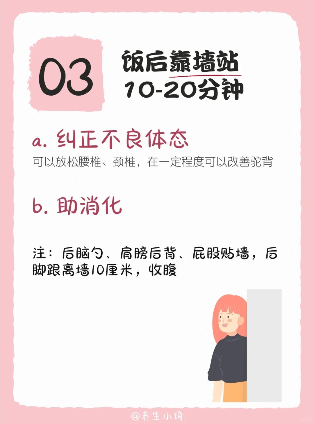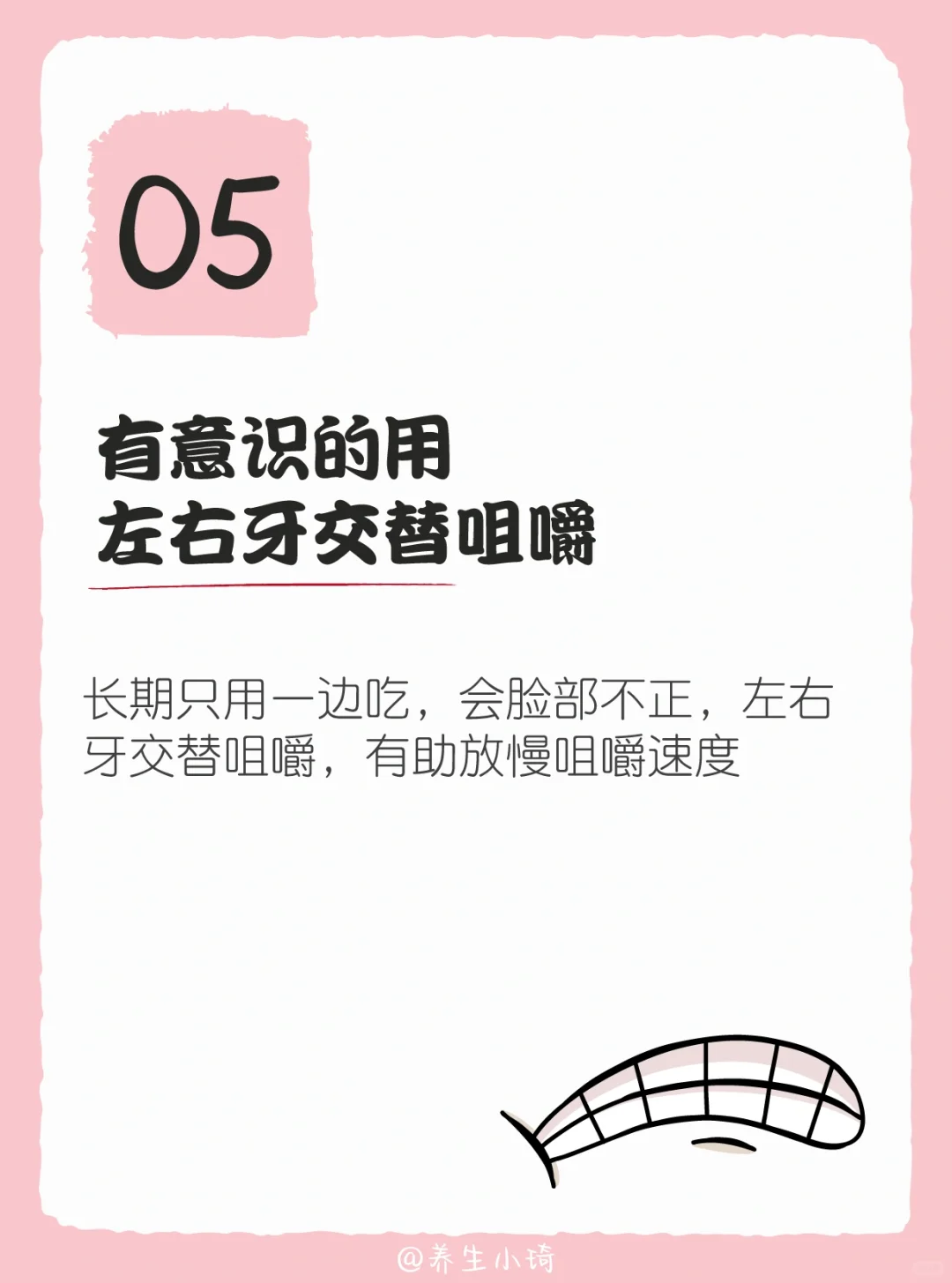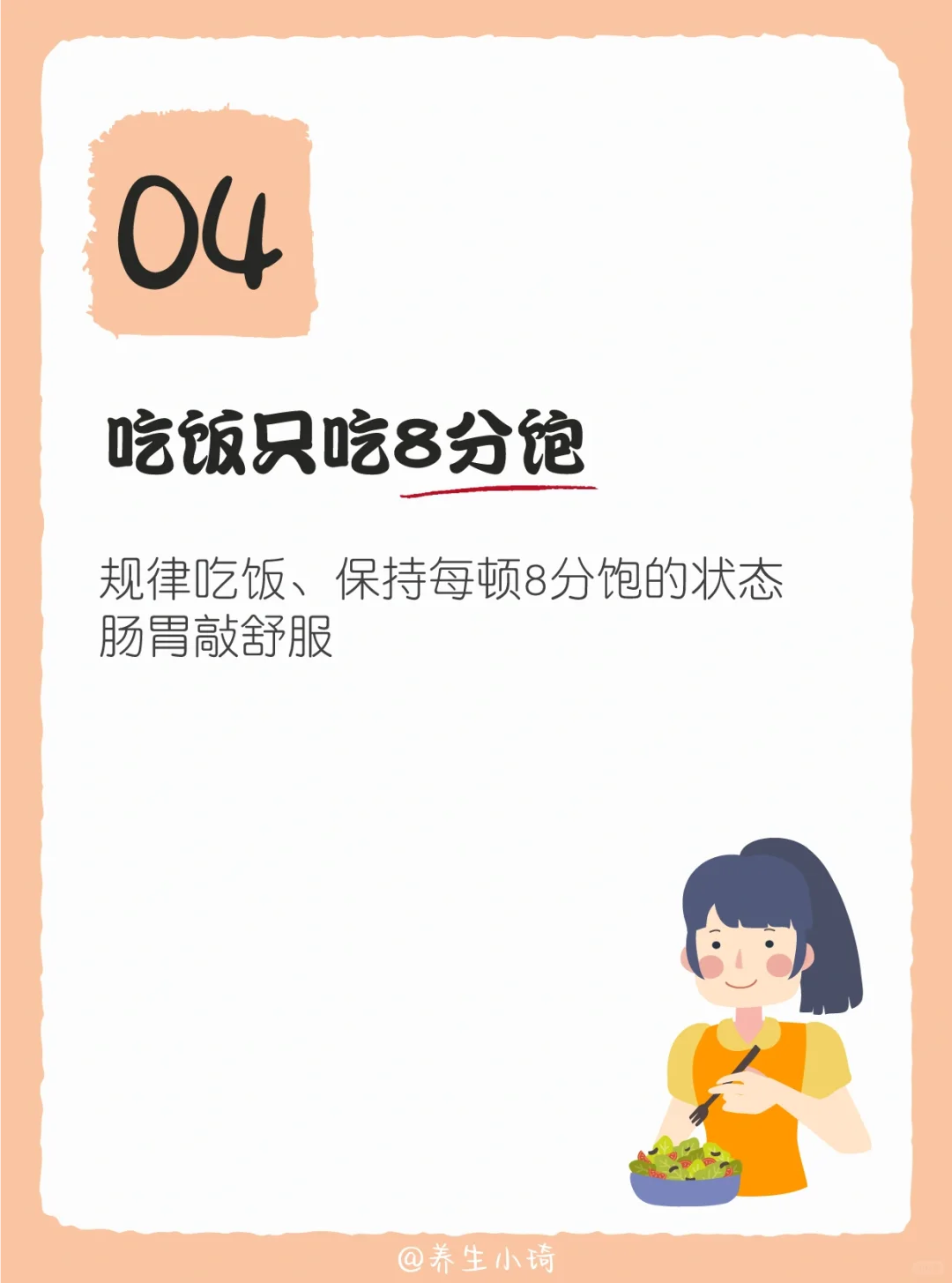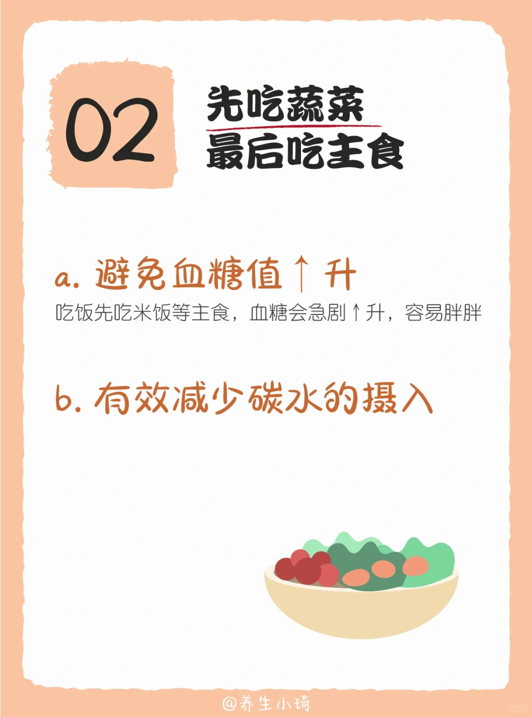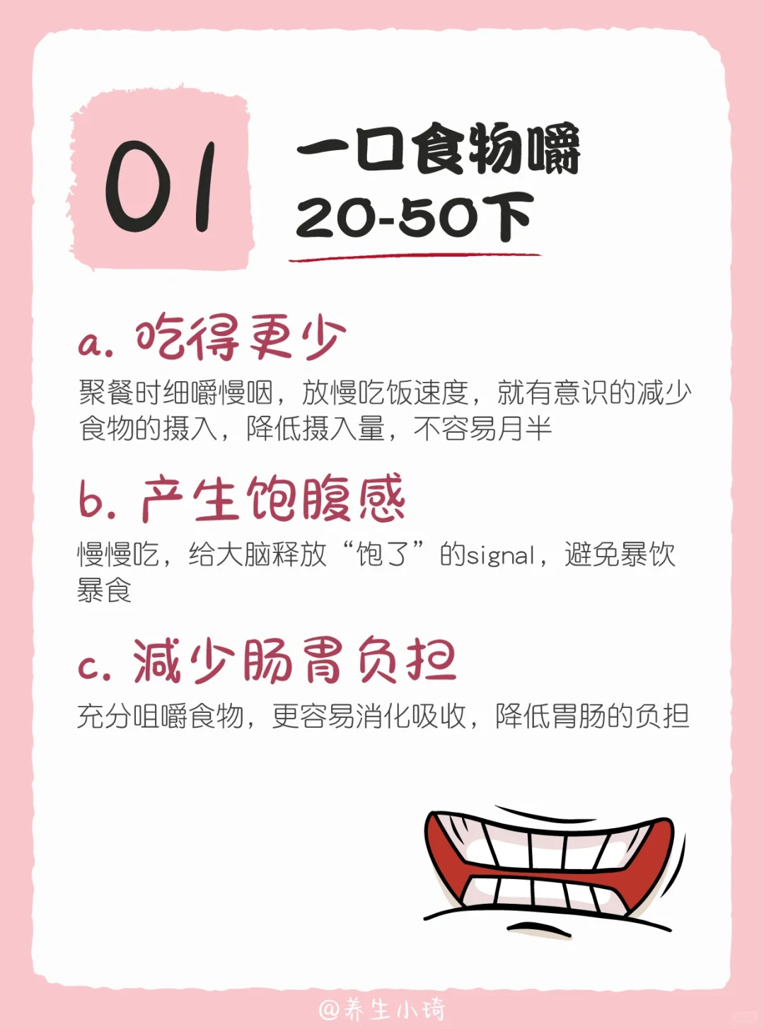 一些不起眼的小习惯 比节食减肥健康,比轻断食好坚持[赞R] - [一R]一口食物嚼20-50下 [二R]先吃蔬菜,最后吃主食 [三R]饭后靠墙站10-20分钟 [四R]吃饭只吃8分饱 [五R]有意识用左右牙交替嚼 [六R]不吃汤泡饭 - [清单R]从现在开始养成好习惯,开启无意识瘦瘦瘦[举手R]