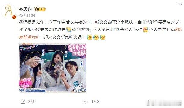 #齐思钧李莎旻子去于文文新家吃火锅#没有想到他们三个人的关系竟然如此亲密。这次竟然去于文文的新家吃火锅,感觉也是相当美好又让人羡慕的友情了。