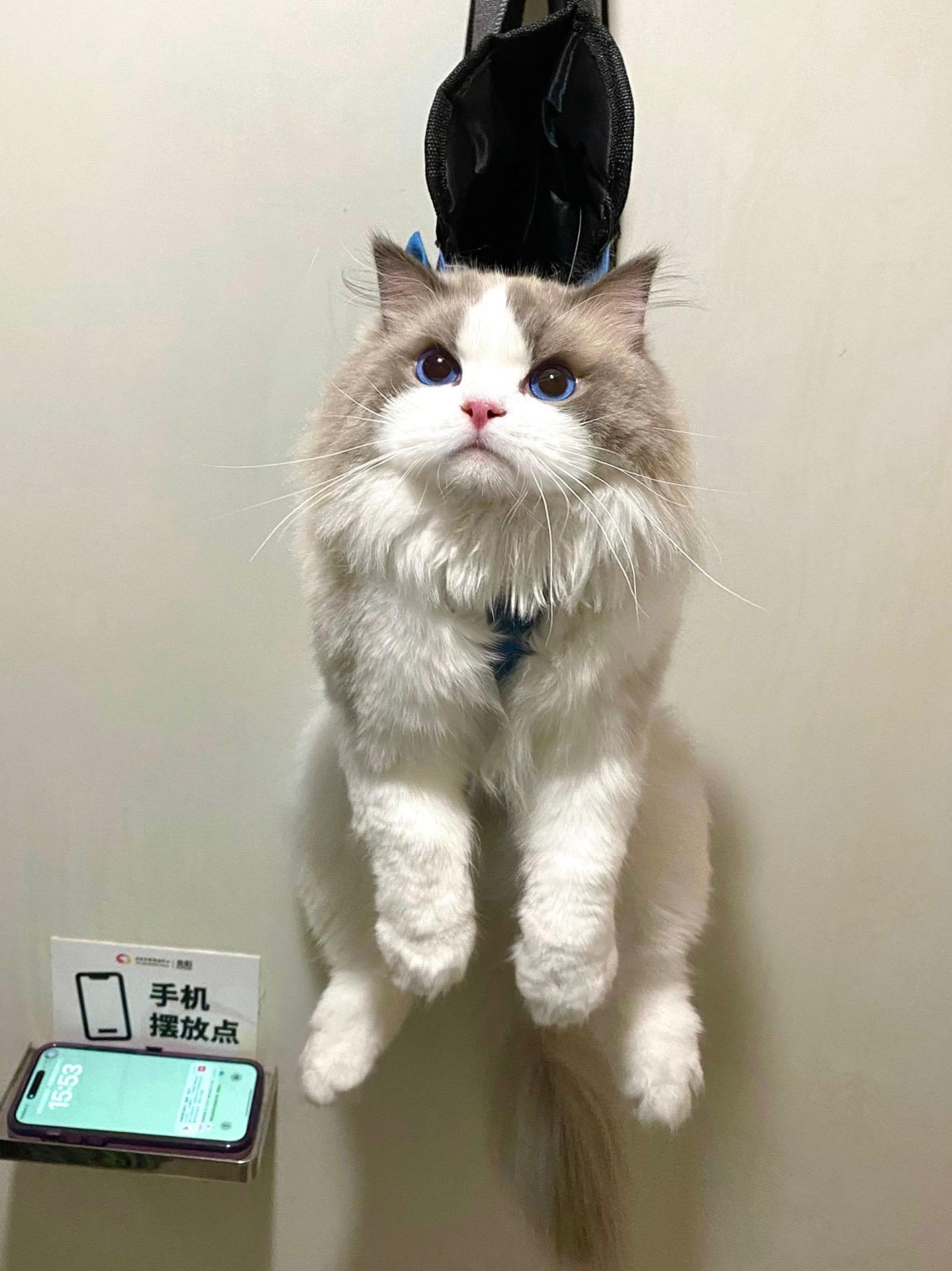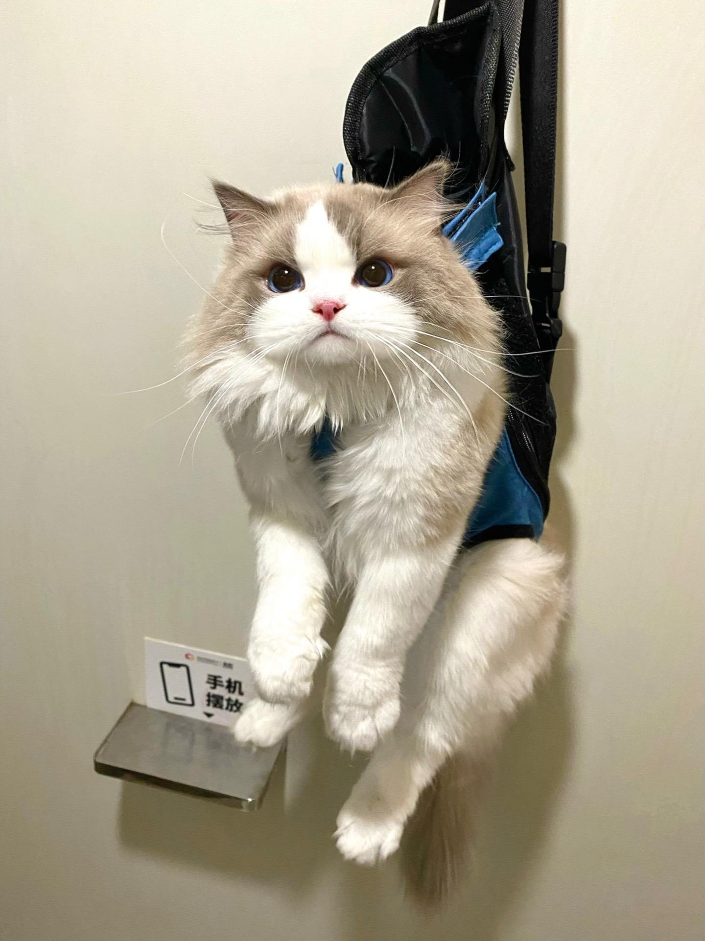 带猫逛商场突然肚子疼。不建议一个人带猫逛街 只能委屈他闻臭味了🥺