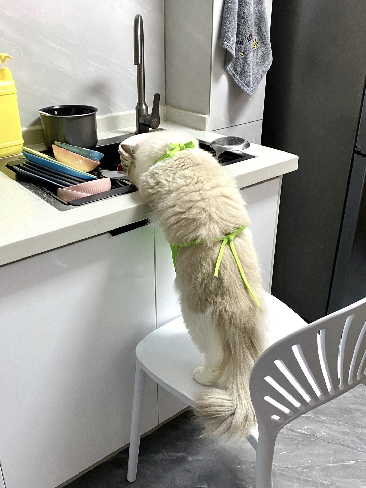 妈!今晚谁也别想跟我抢着洗碗。