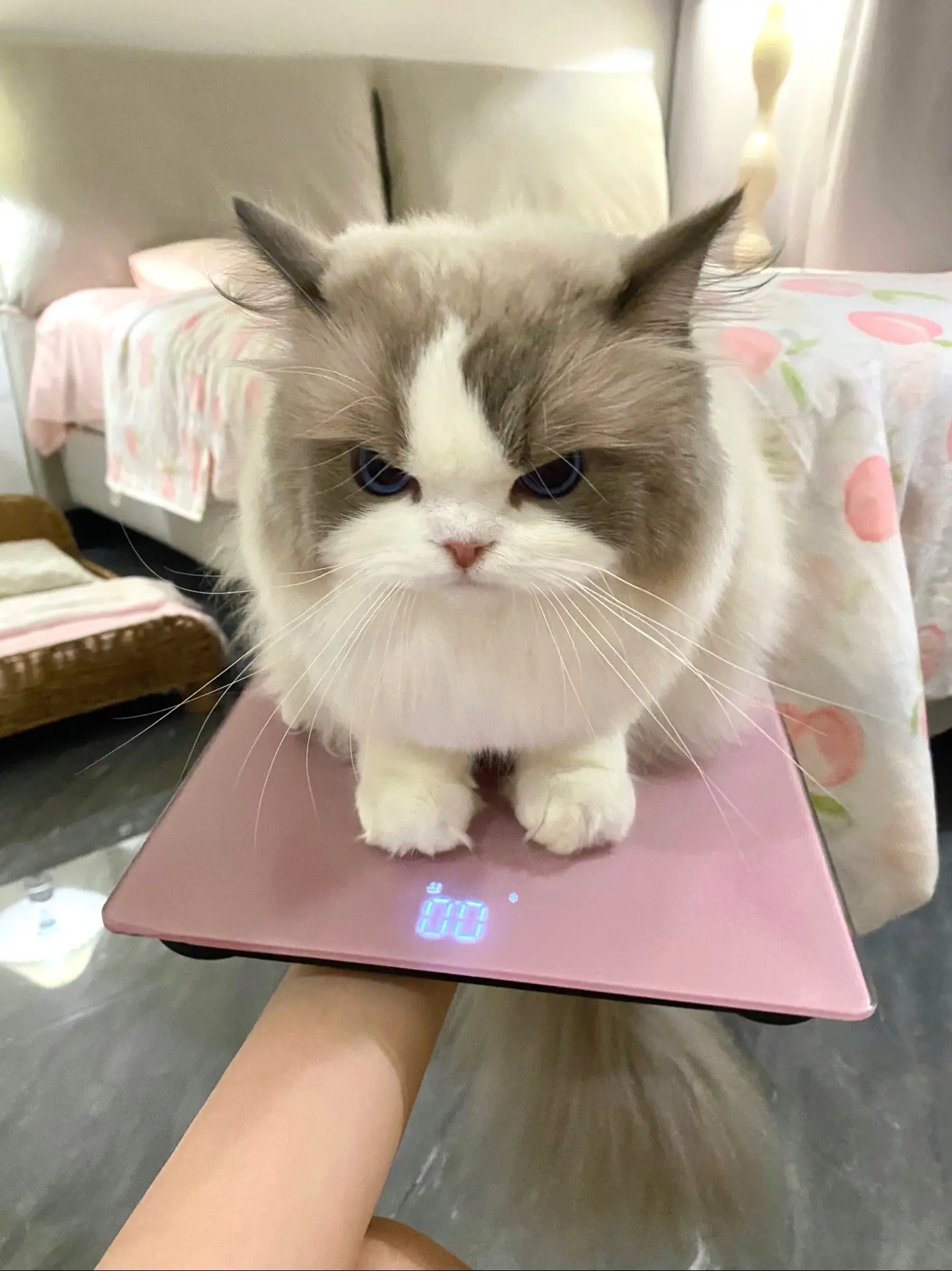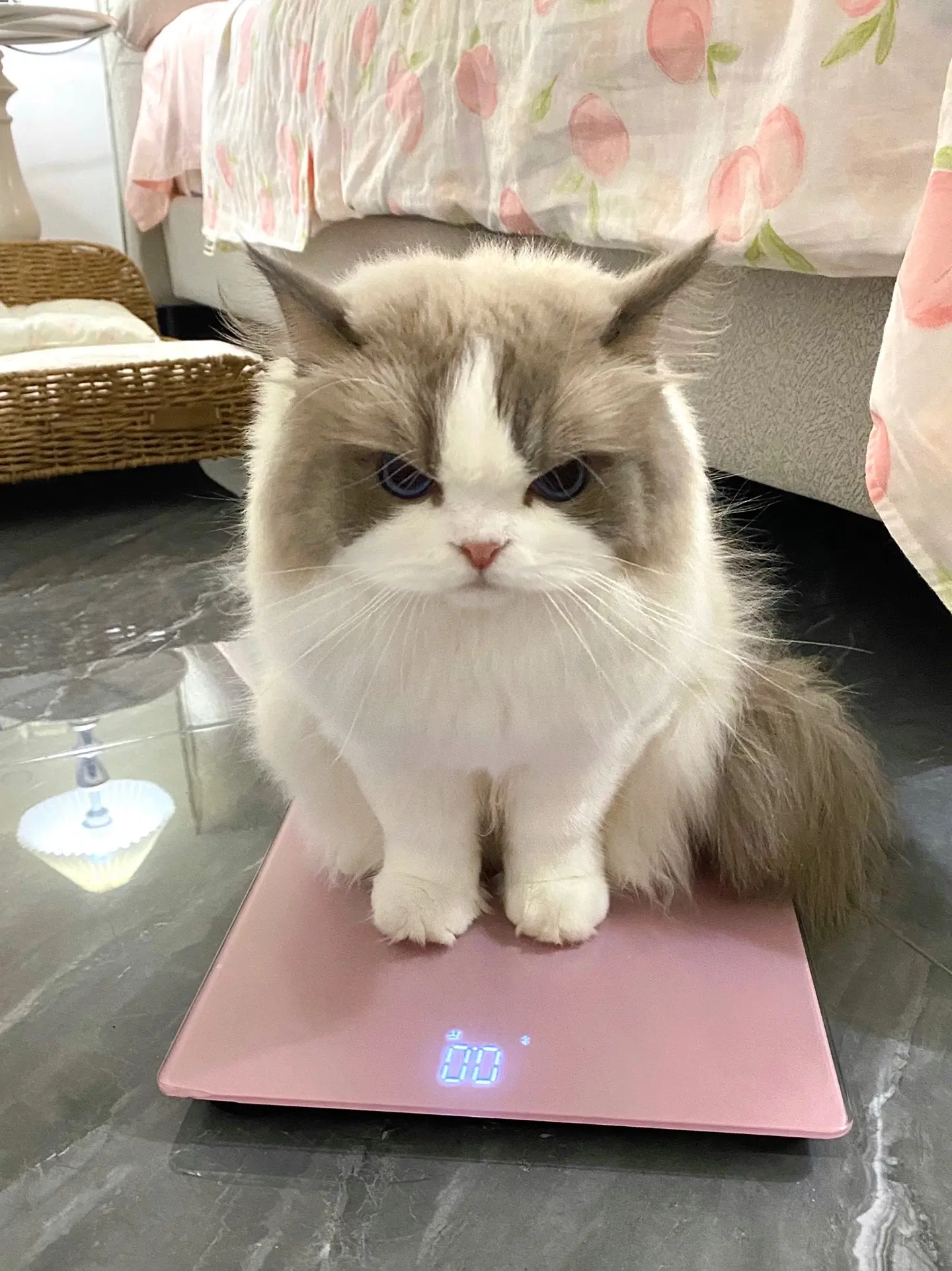 一上称就生气了。你看看你又胖了吧 奶米:哼!我就说是称坏了吧