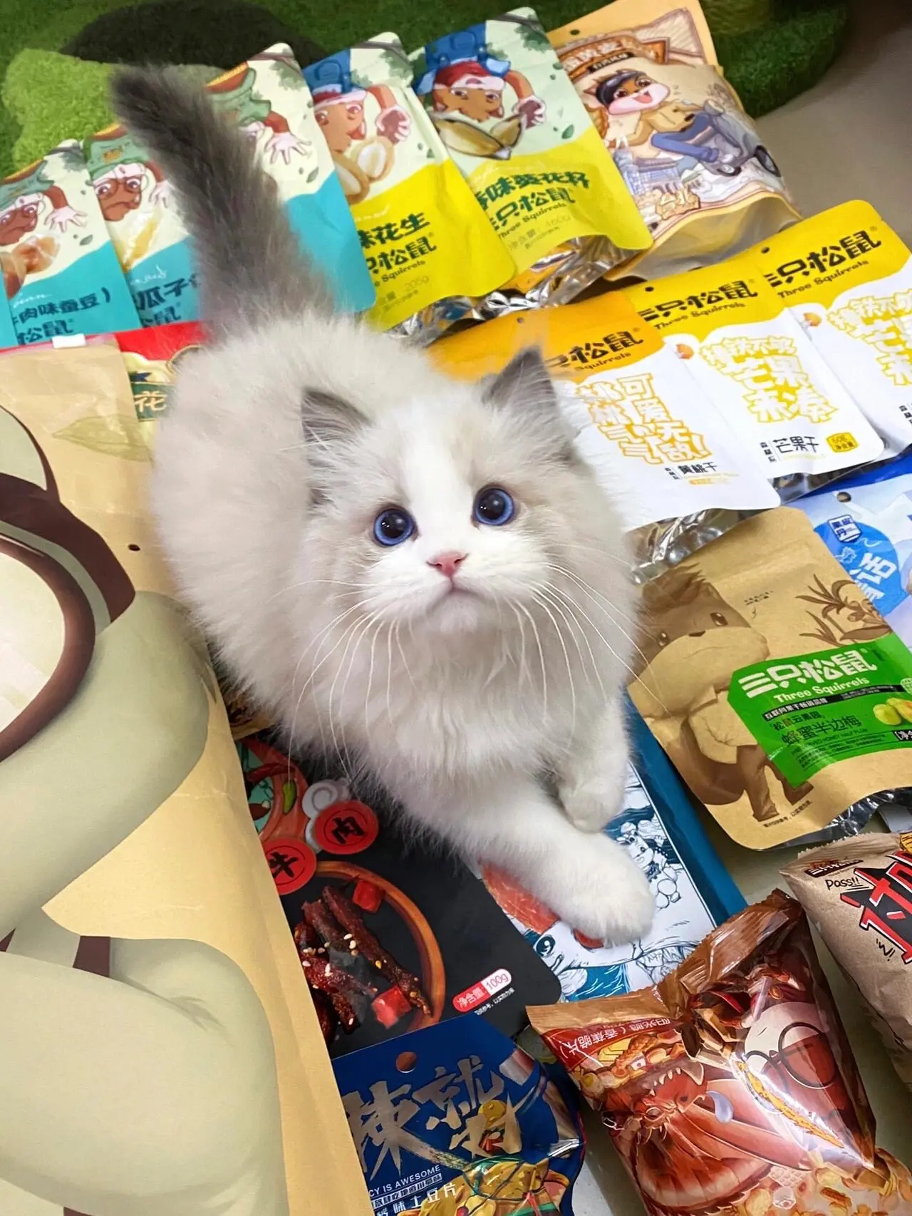 一上称就生气了。你看看你又胖了吧奶米:哼!我就说是称坏了吧