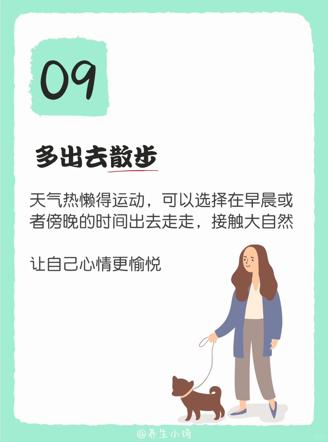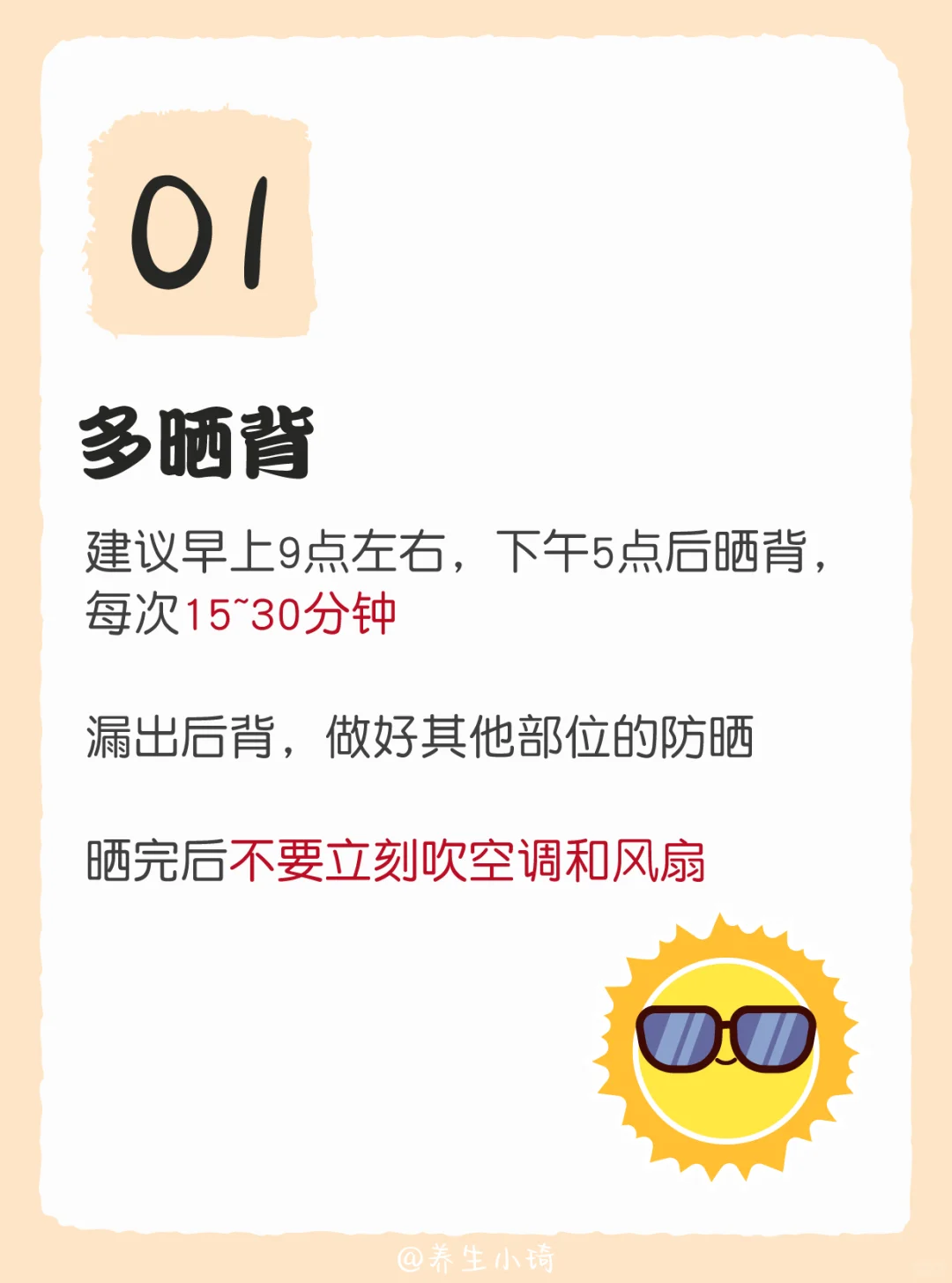 [清单R]今年的三伏天非常特殊,初伏和末伏持续10天,但中伏跟以往不同,从7月25日进入中伏,一直到8月13日,持续20天,也就是在中伏之后,又闰了一个中伏 很多姐妹经常感觉明明睡得很久,还很困、脸经常油油的、容易有口气 那么就要赶紧抓住一年一度的“黄金养生”[举手R] - [清单R]三伏天超容易执行的9件养生小事,赶紧mark![清单R] 晒背 光脚踩地 热养 每天午睡 三伏贴 艾灸 多喝水 多按足三里 多出去散步