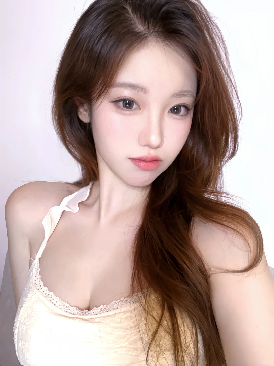 眼妆:偏灰调的藕粉色在眼窝打底,肿眼泡/想放大眼睛的姐妹再拿粉棕色加深双眼皮褶皱内