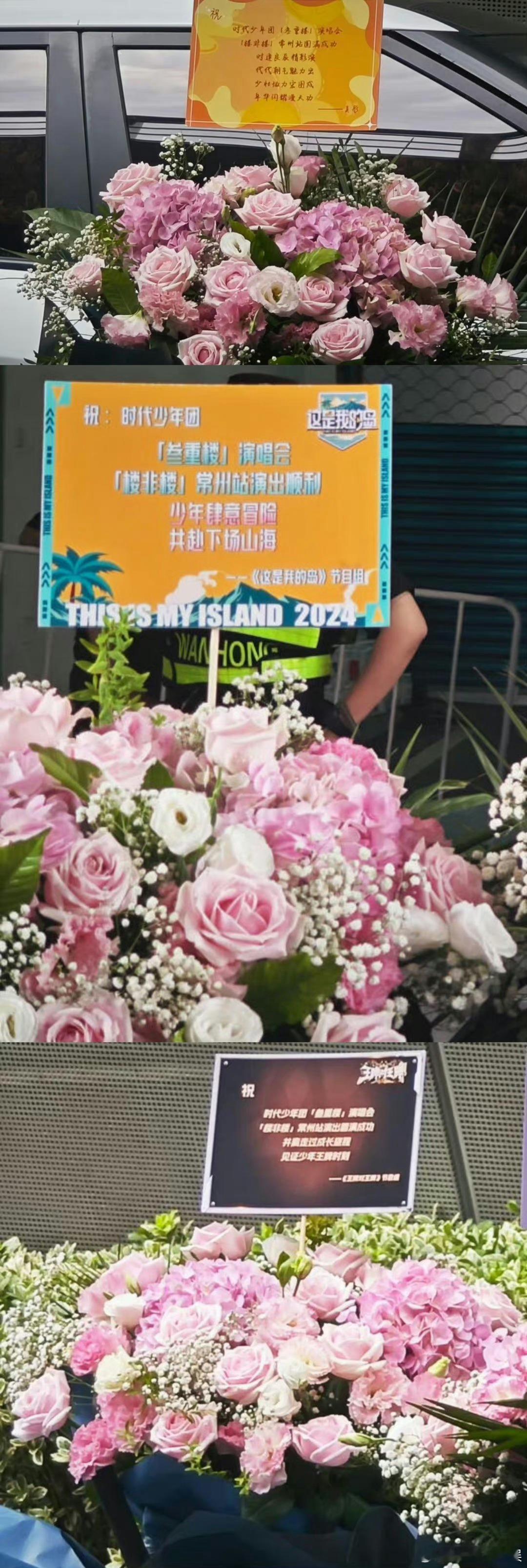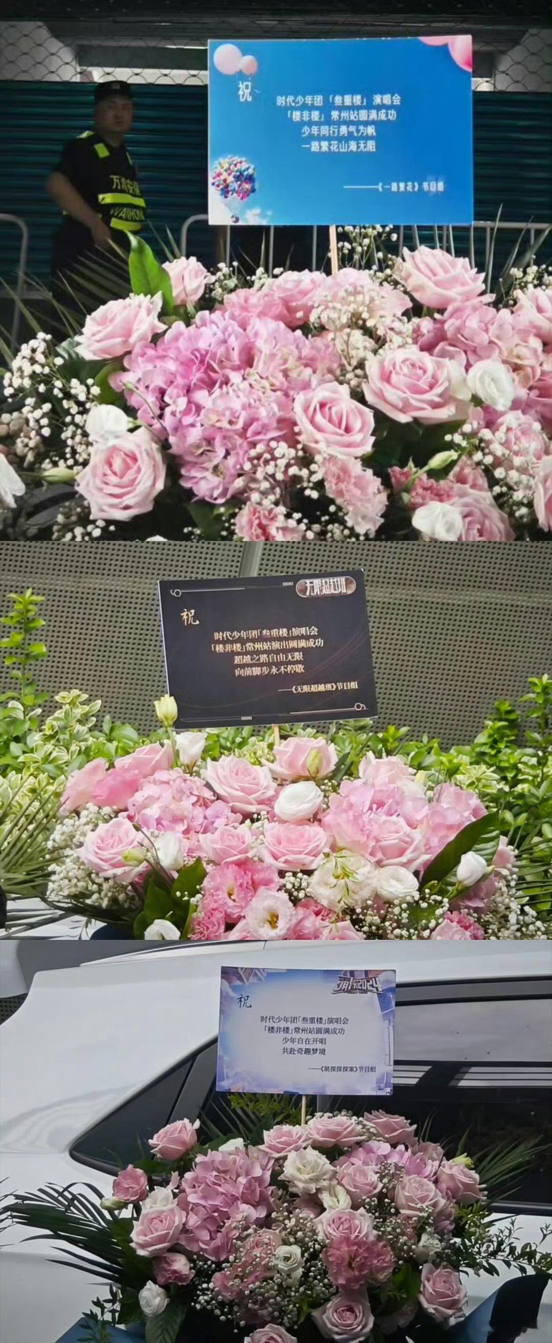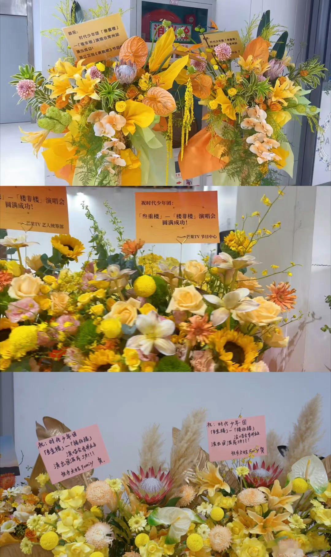 时代少年团常州演唱会,龚俊、白鹿、跑男等节目组纷纷送来花篮,人缘挺好啊