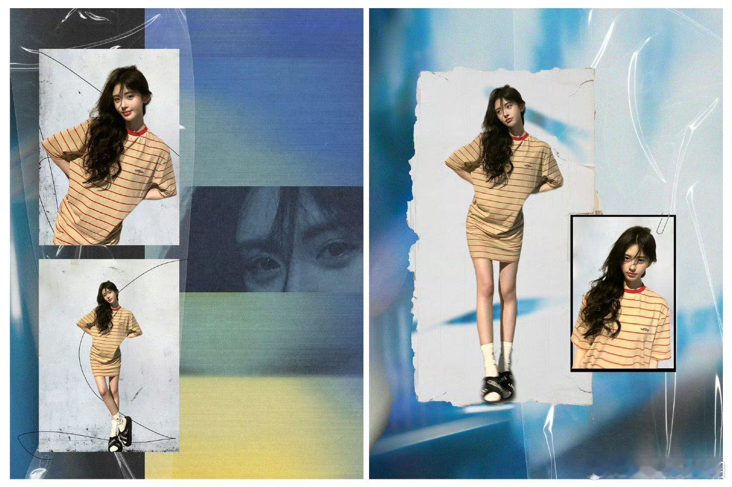 鞠婧祎这个条纹裙的照片真的很慵懒诶[哇][哇][哇]身高直接视觉感觉1米7多了呢