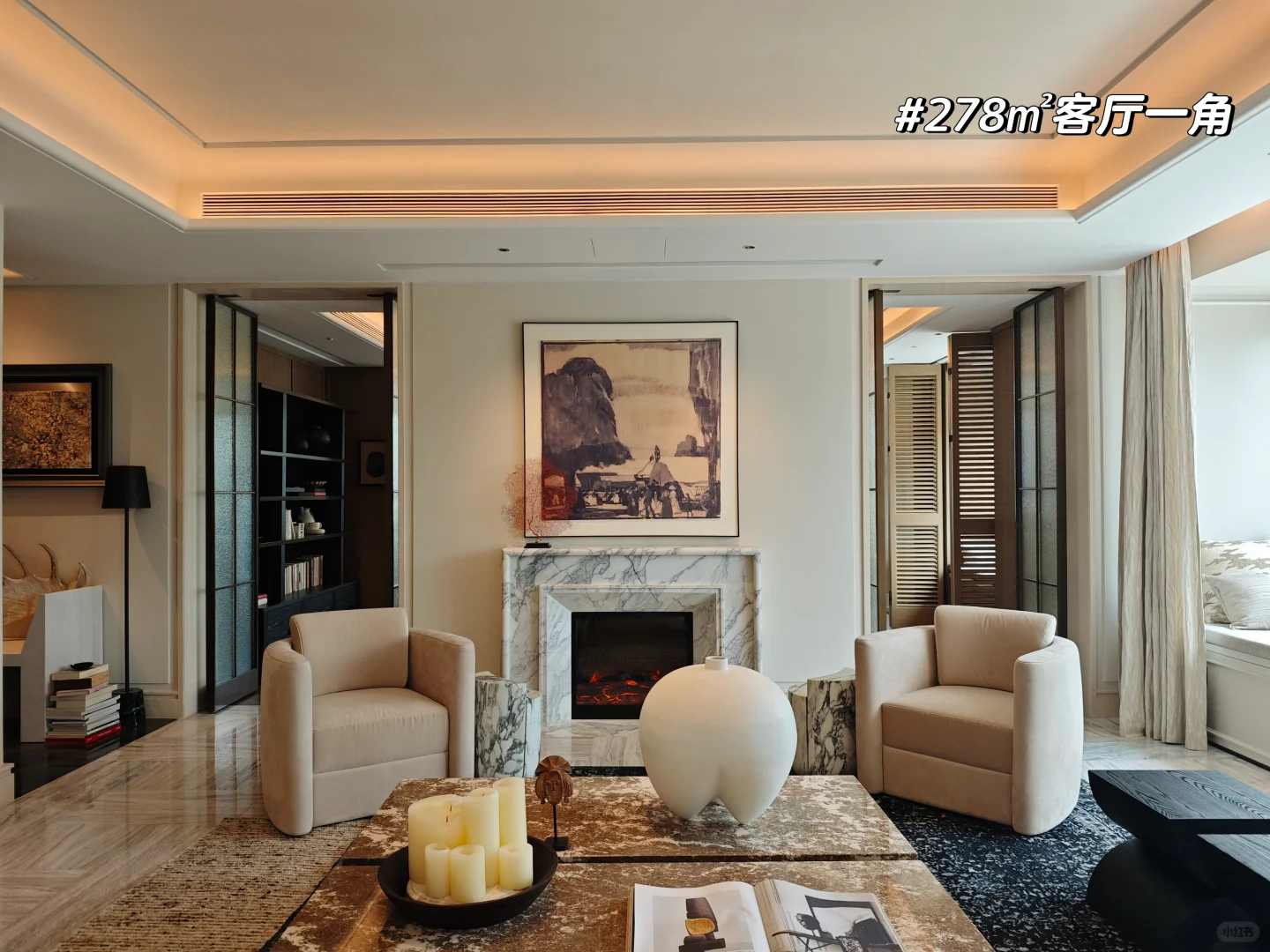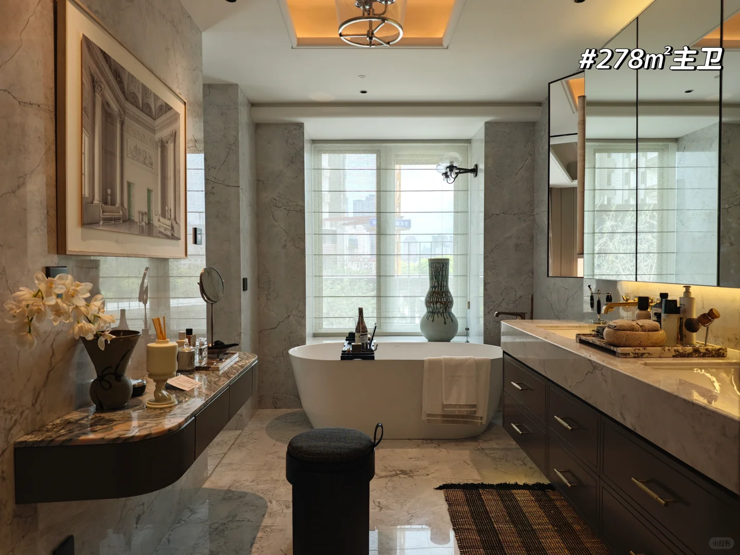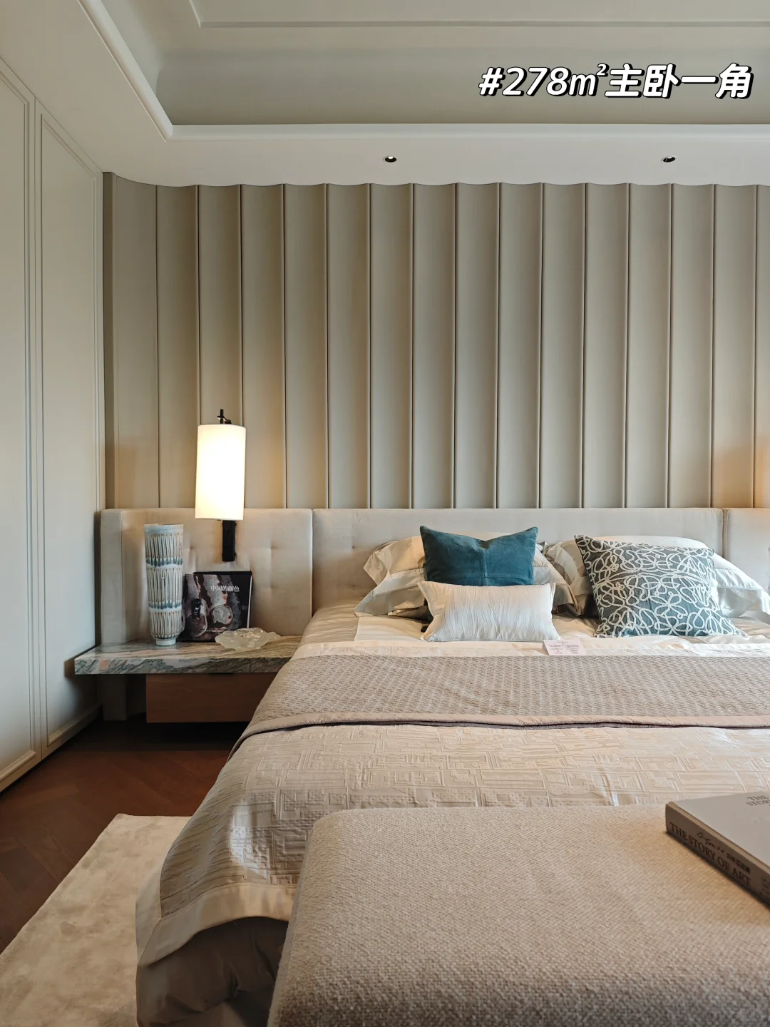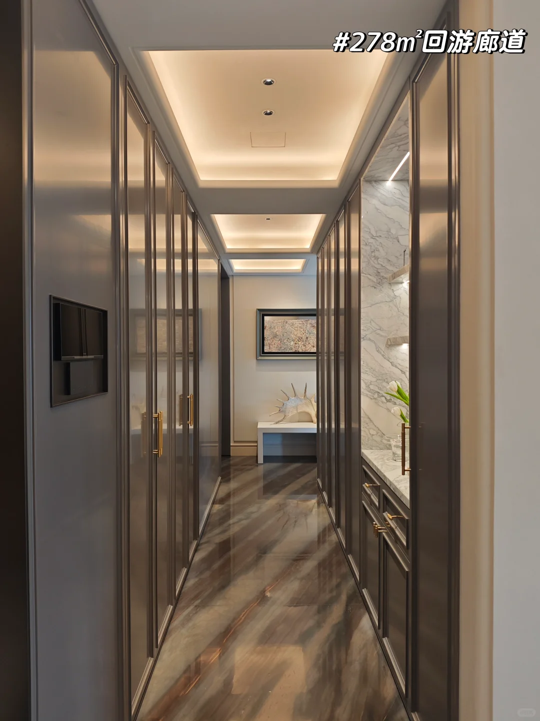 图12~16是另一个样板间278㎡的空间,注意看地面,每个空间都花了心思打造了不同的地面材质,大户型的设计更老钱风一些。