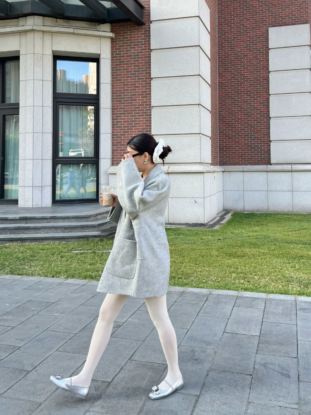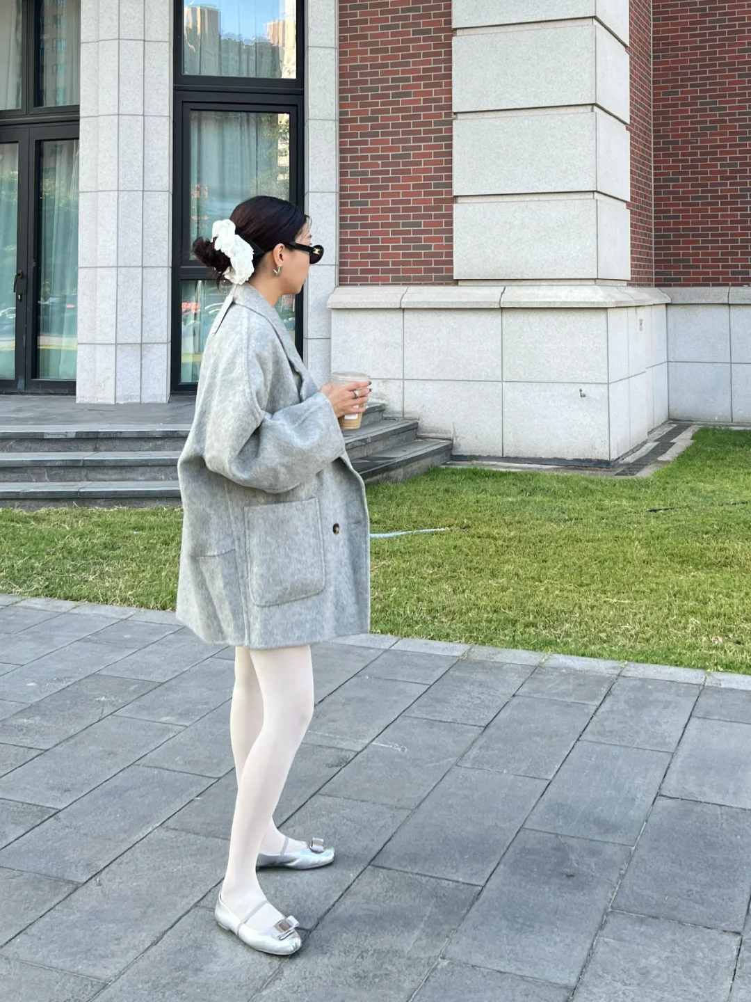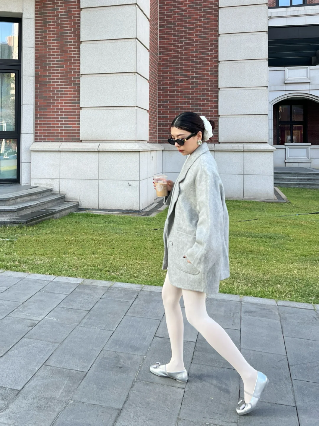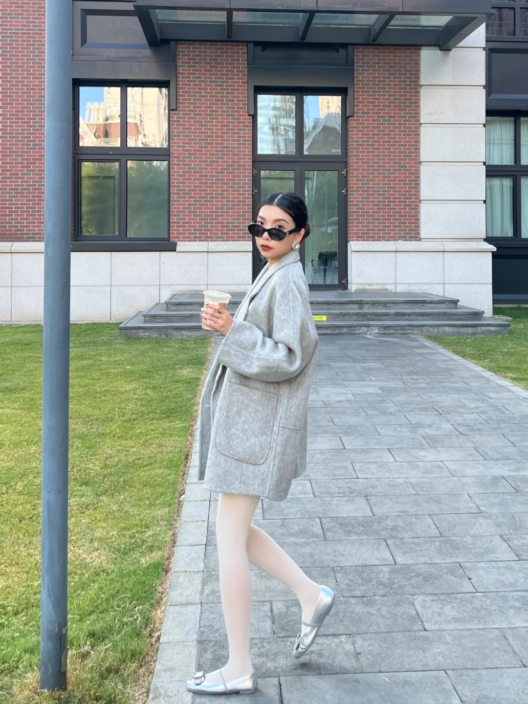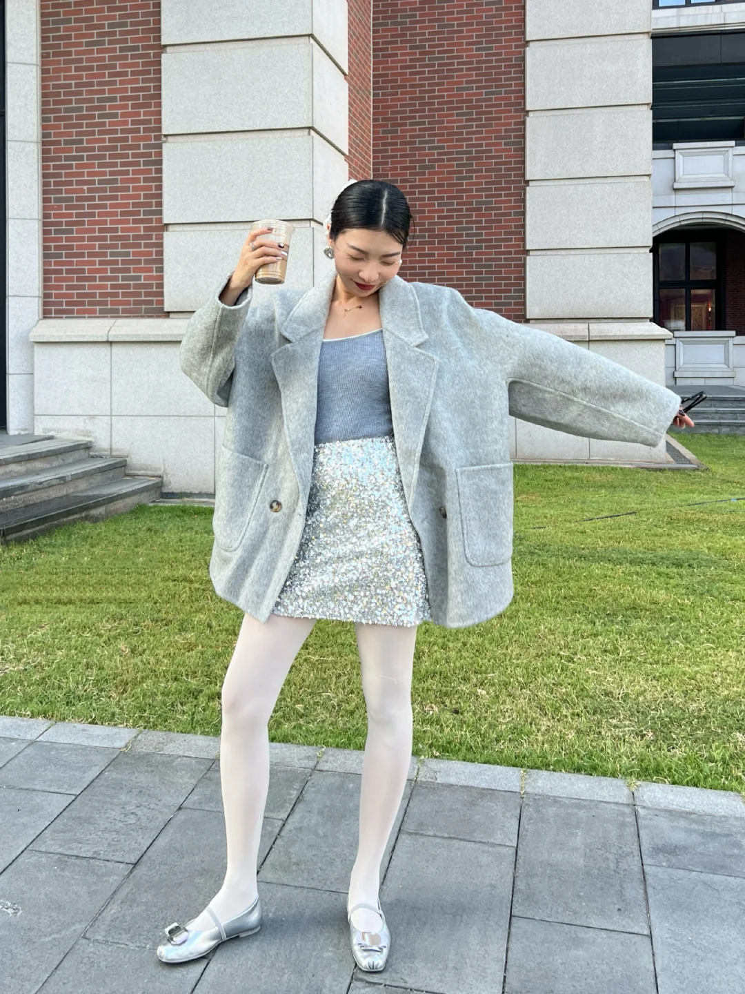 灰色呢子大衣🧥搭配亮片裙 秋冬我还是很喜欢灰色系