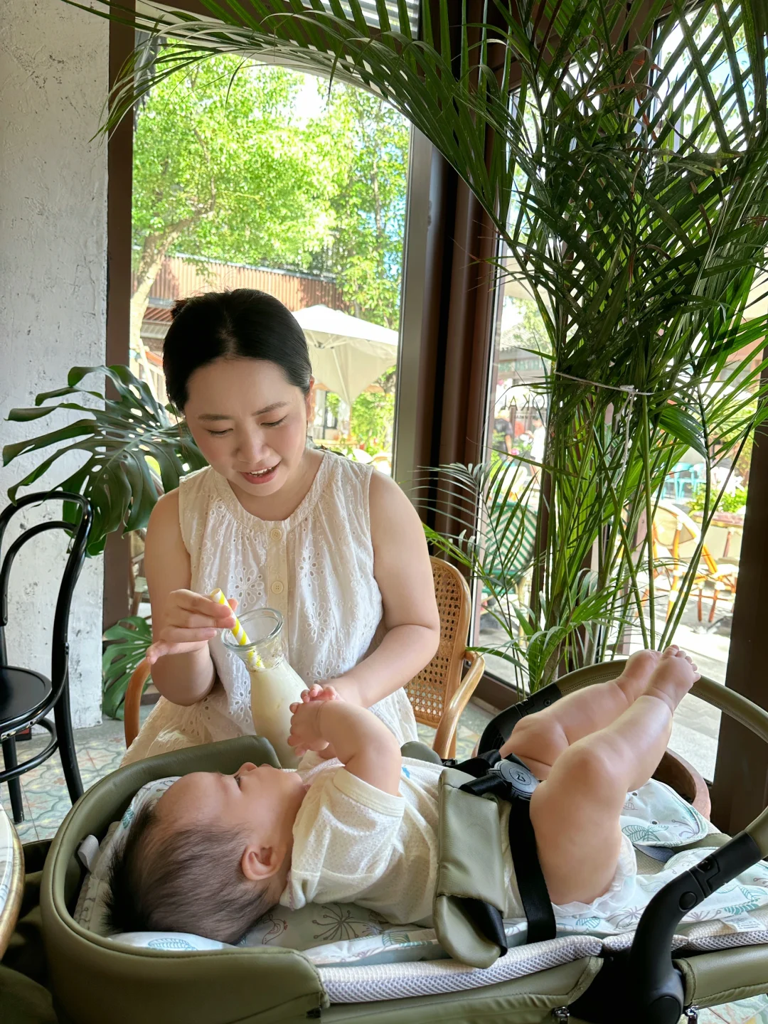 找不到母婴室,就系上哺乳巾直接在餐厅🍼