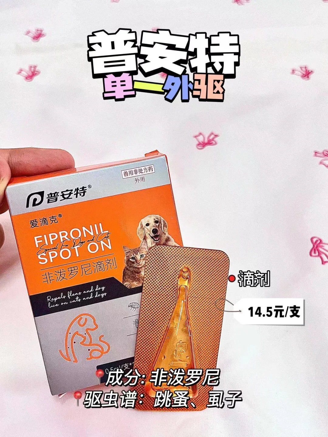 单一外驱,要搭配内驱驱虫药一起使用效果更好,主要对抗跳蚤和虱子,属于比较基础的外驱产品~