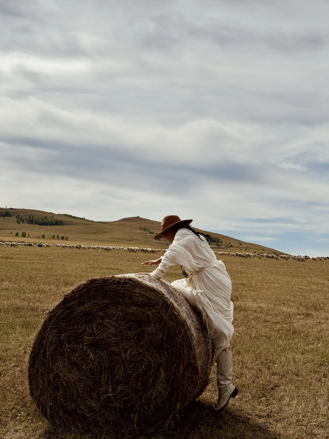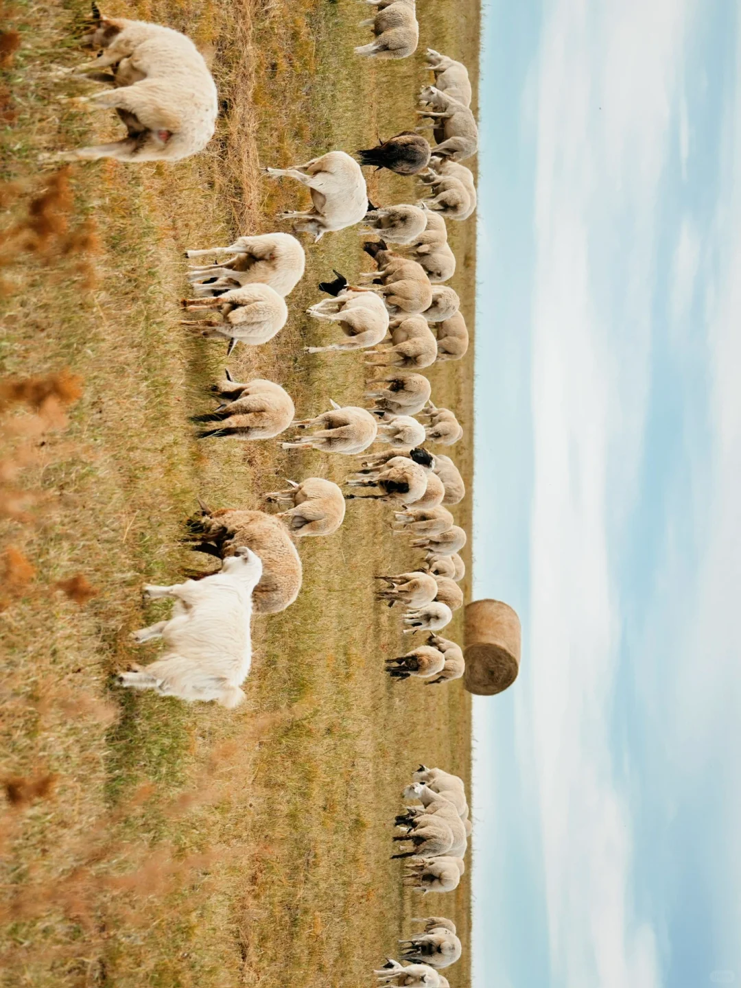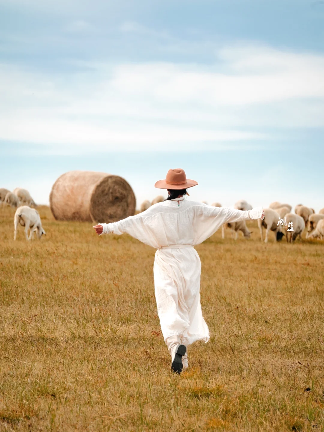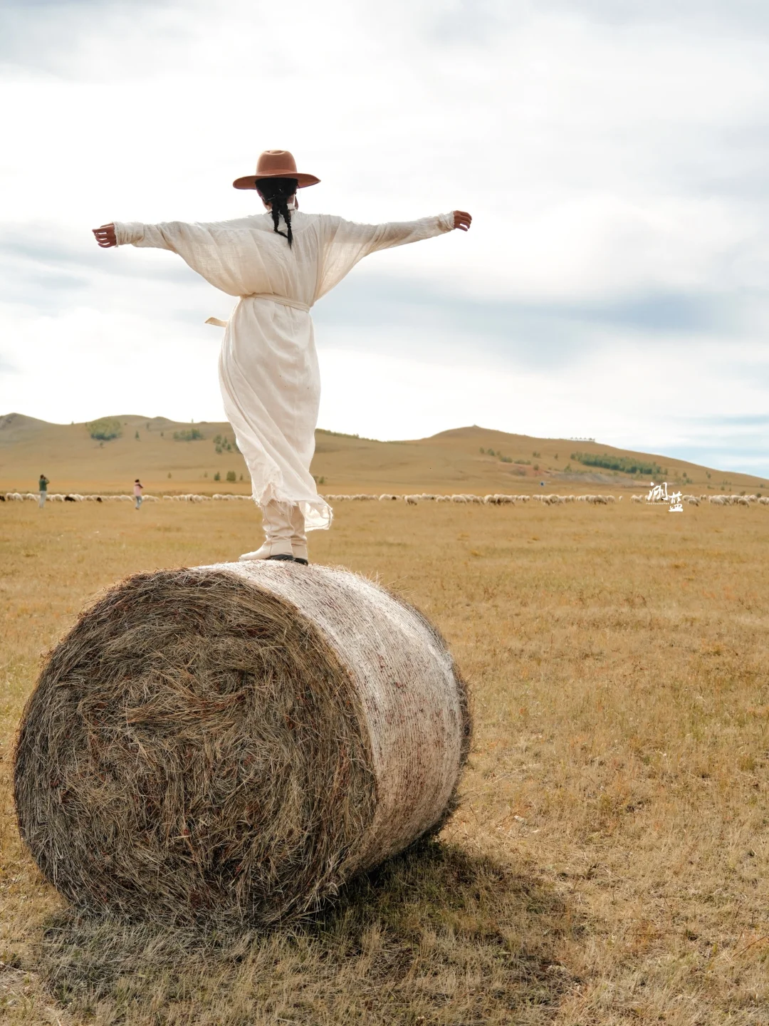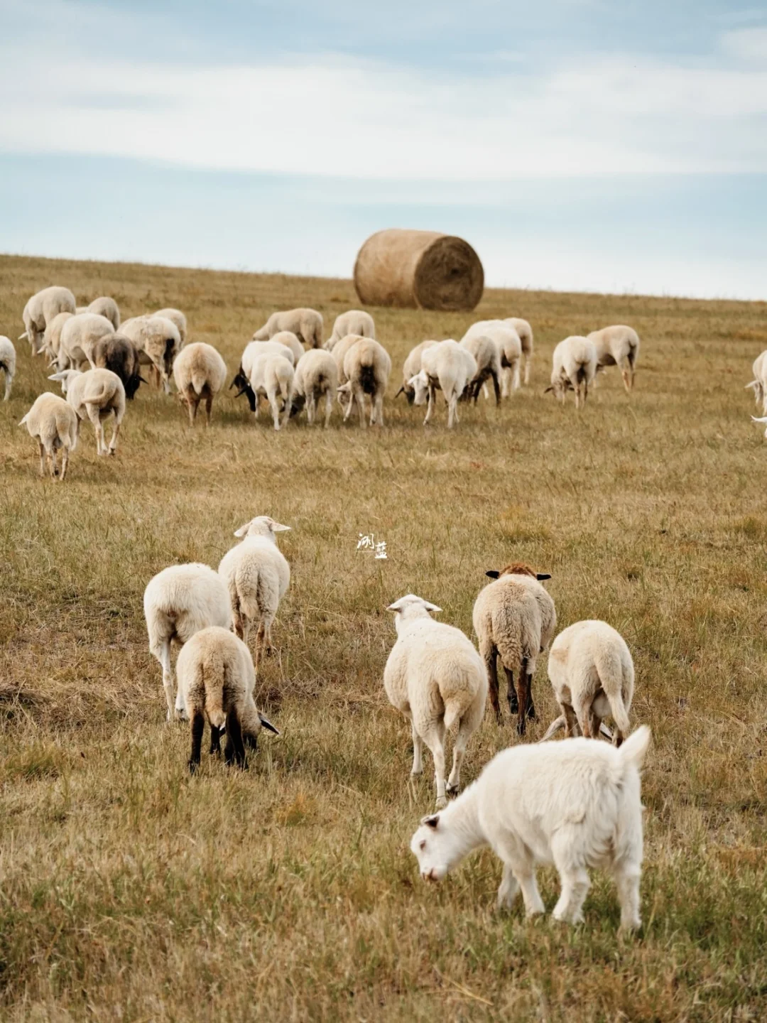 现在的呼伦贝尔秋意正浓,自驾路上随时都能看到这些瑞士卷一般的草垛,如果正好又偶遇羊群,记得立刻停车!拍照!