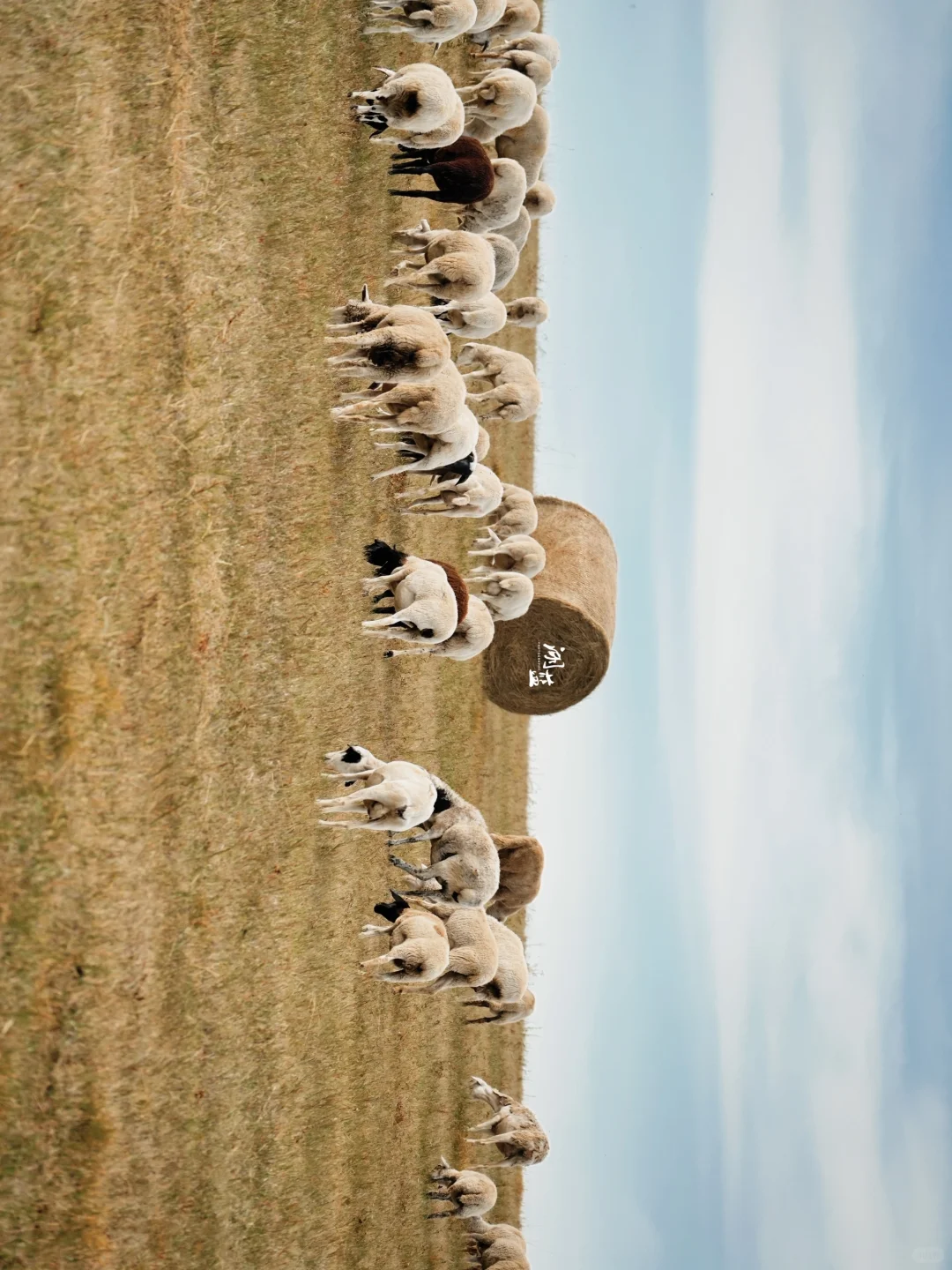 普通瑞士卷已经很好拍了,没想到运气好还遇到了羊群!羊群点点下的草垛真的更有旷野的气息了!