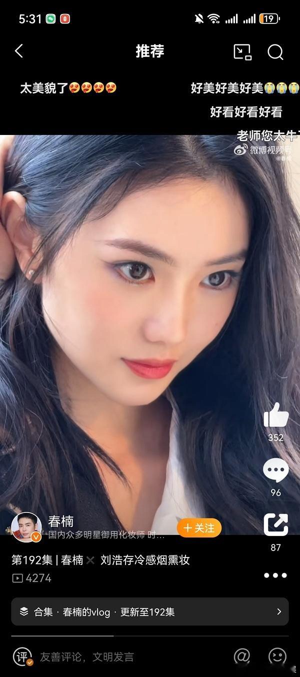 刘浩存miumiu看秀造型怼脸视频截图,审判一下妆造,好看吗?