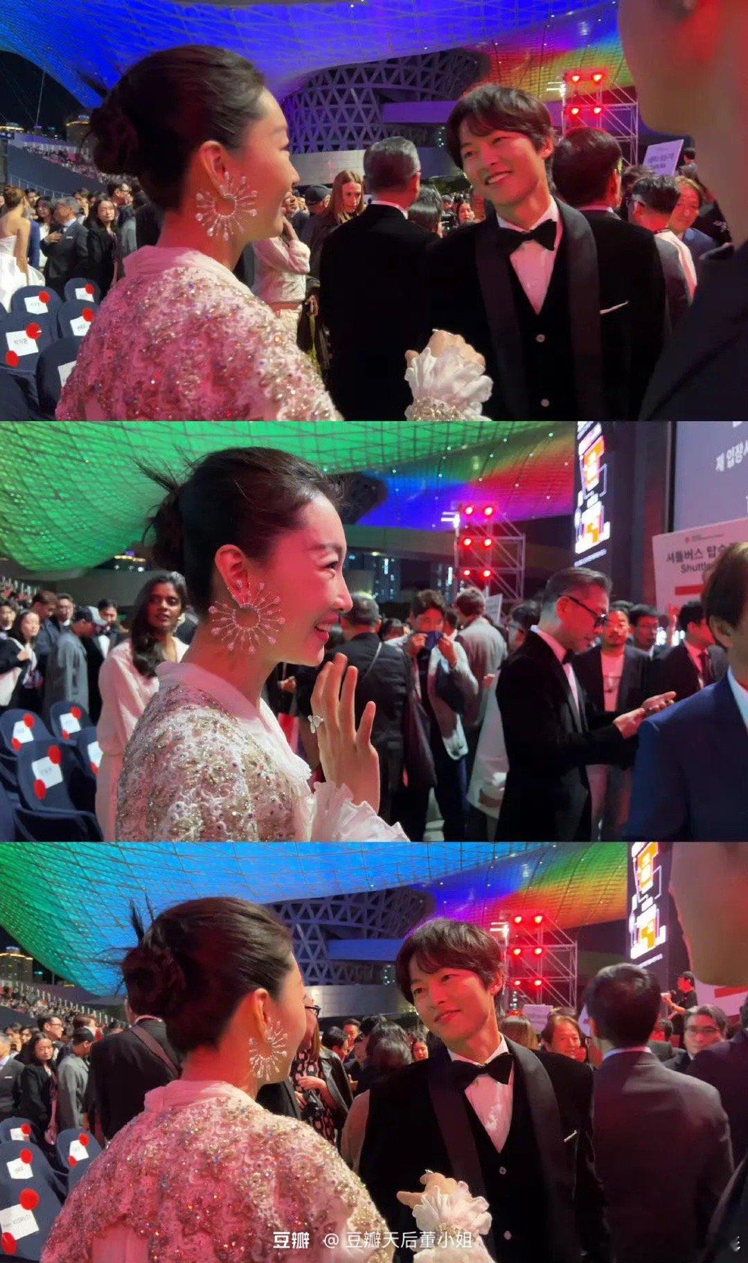 周冬雨和宋仲基破次元互动[思考] 两人蛮客气的