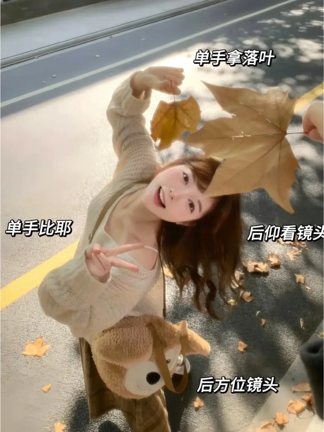 秋天落叶这样拍📸真的太有氛围感了~拍出来的照片好唯美~意境感满满!简单好学,快艾特闺蜜来学吧!