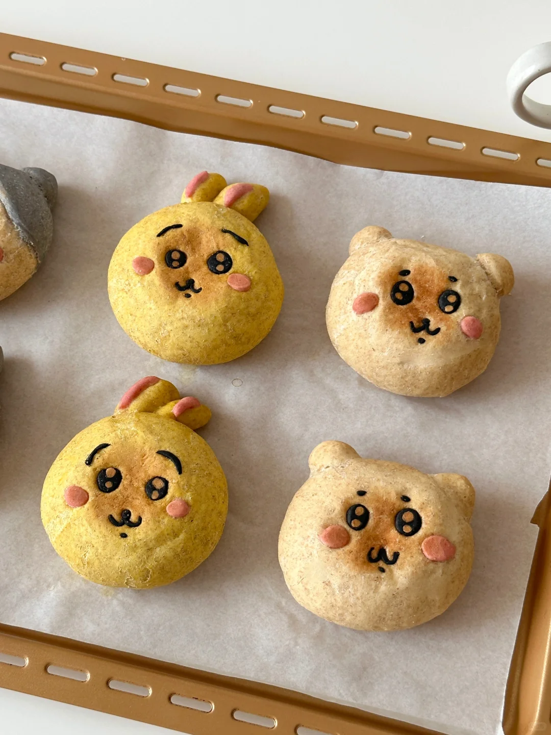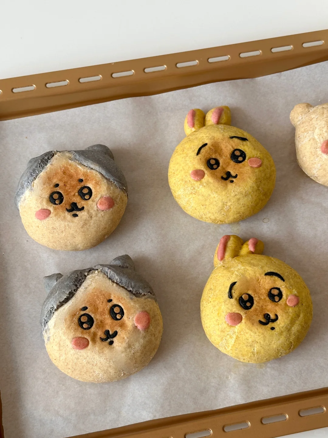 7️⃣做好的造型继续发酵30分钟左右,发酵好铺烘焙纸,压一层烤盘,烤箱预热180°烘烤18分钟左右即可(放在烤箱中下层烘烤)