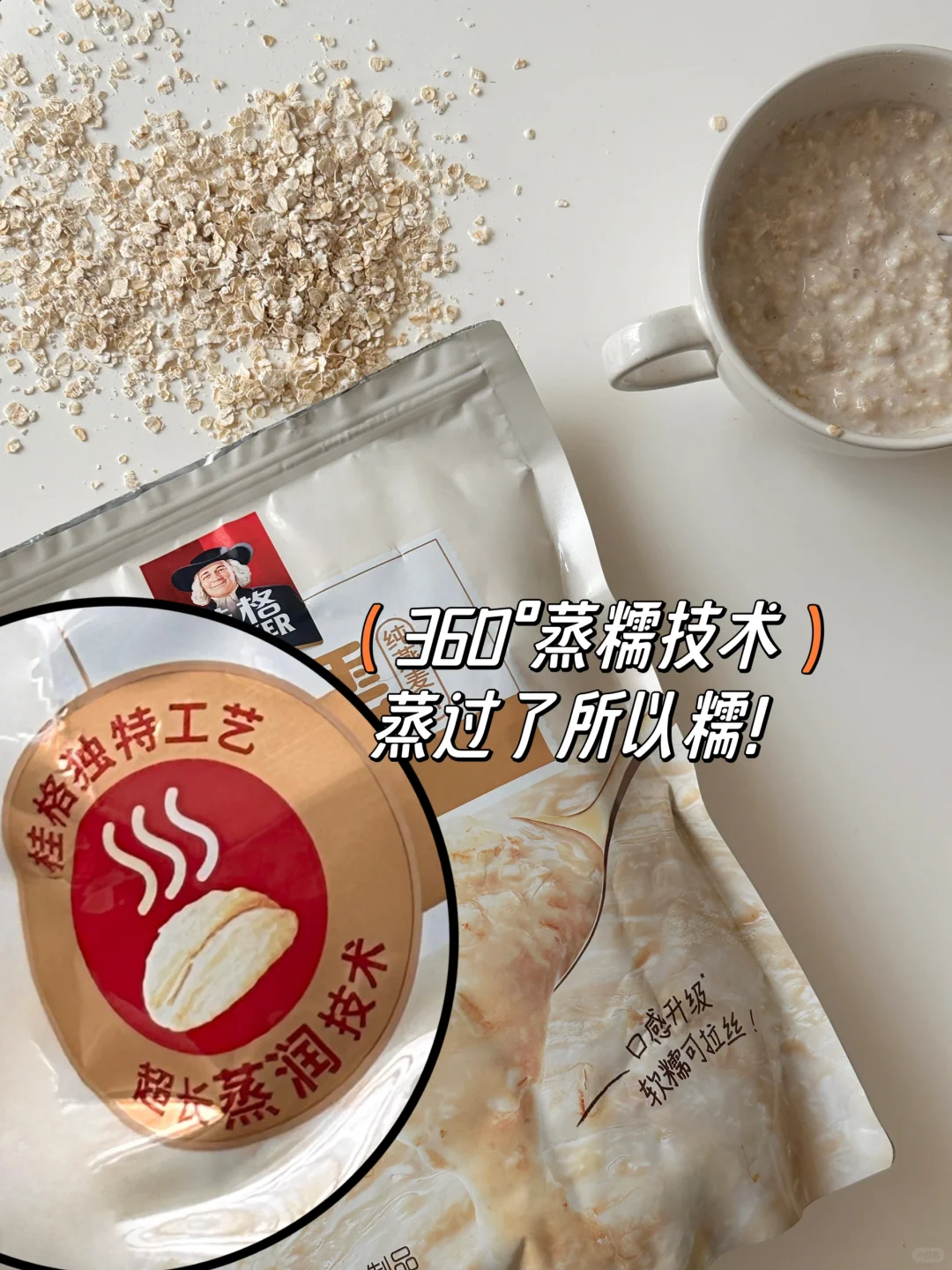 燕麦脑袋们,快来试试这款桂格的糯燕麦:桂格蒸糯糯燕麦!区别于平日干干的难以泡开的燕麦片,更适合制作好吃且软糯的全麦麦芬面包哦!这是桂格首款糯燕麦,纯燕麦升级版,运用360°蒸糯技术,一冲即糯,热水搅拌30s就可以吃啦,口感软糯可拉丝!含有纤维Q益生元,富含膳食纤维,配方干净,健康轻负担哦![大笑R]