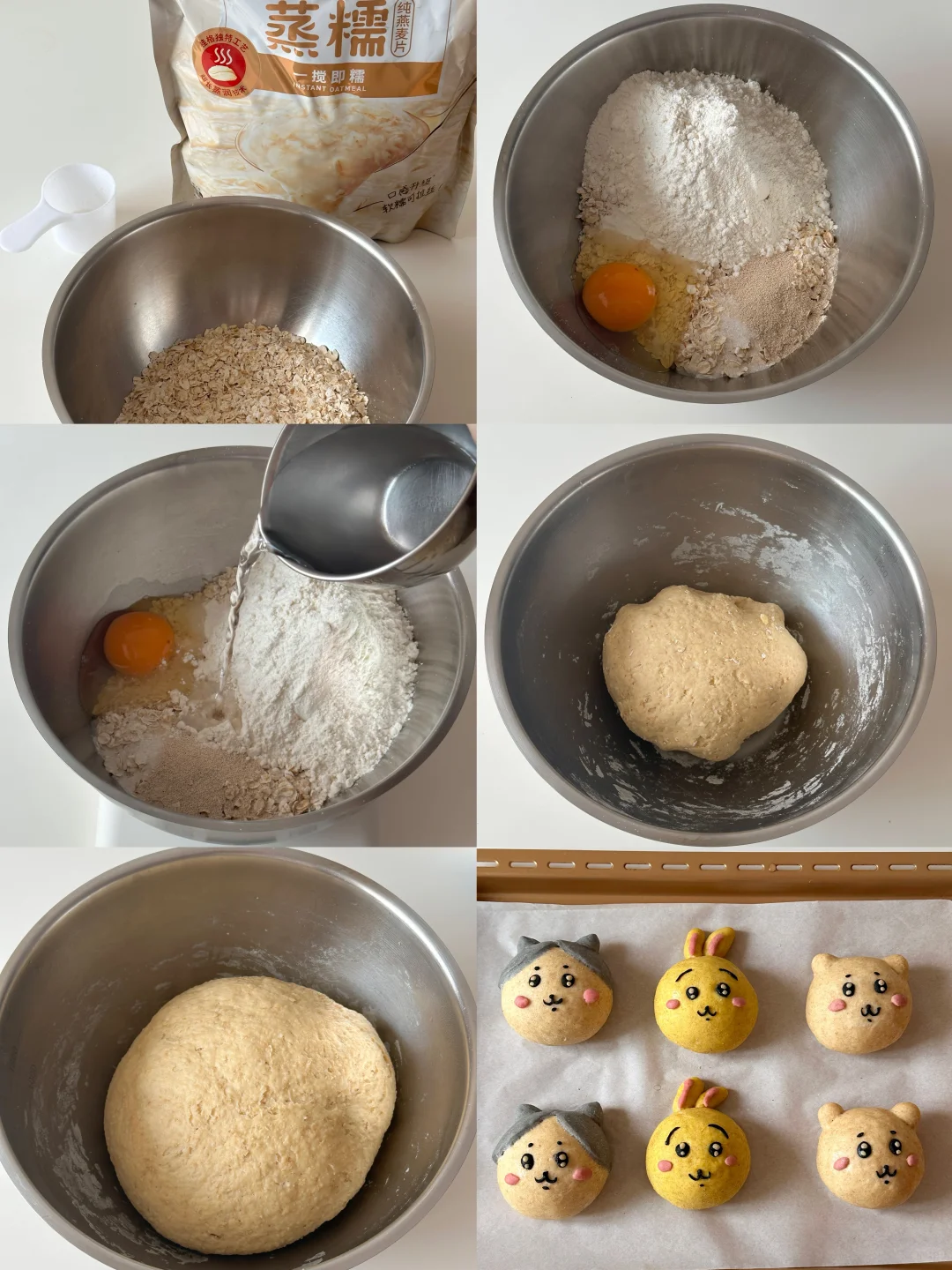 桂格蒸糯即食糯燕麦片100g,高筋面粉 160g,全蛋一个,水120g,酵母3g,盐2g