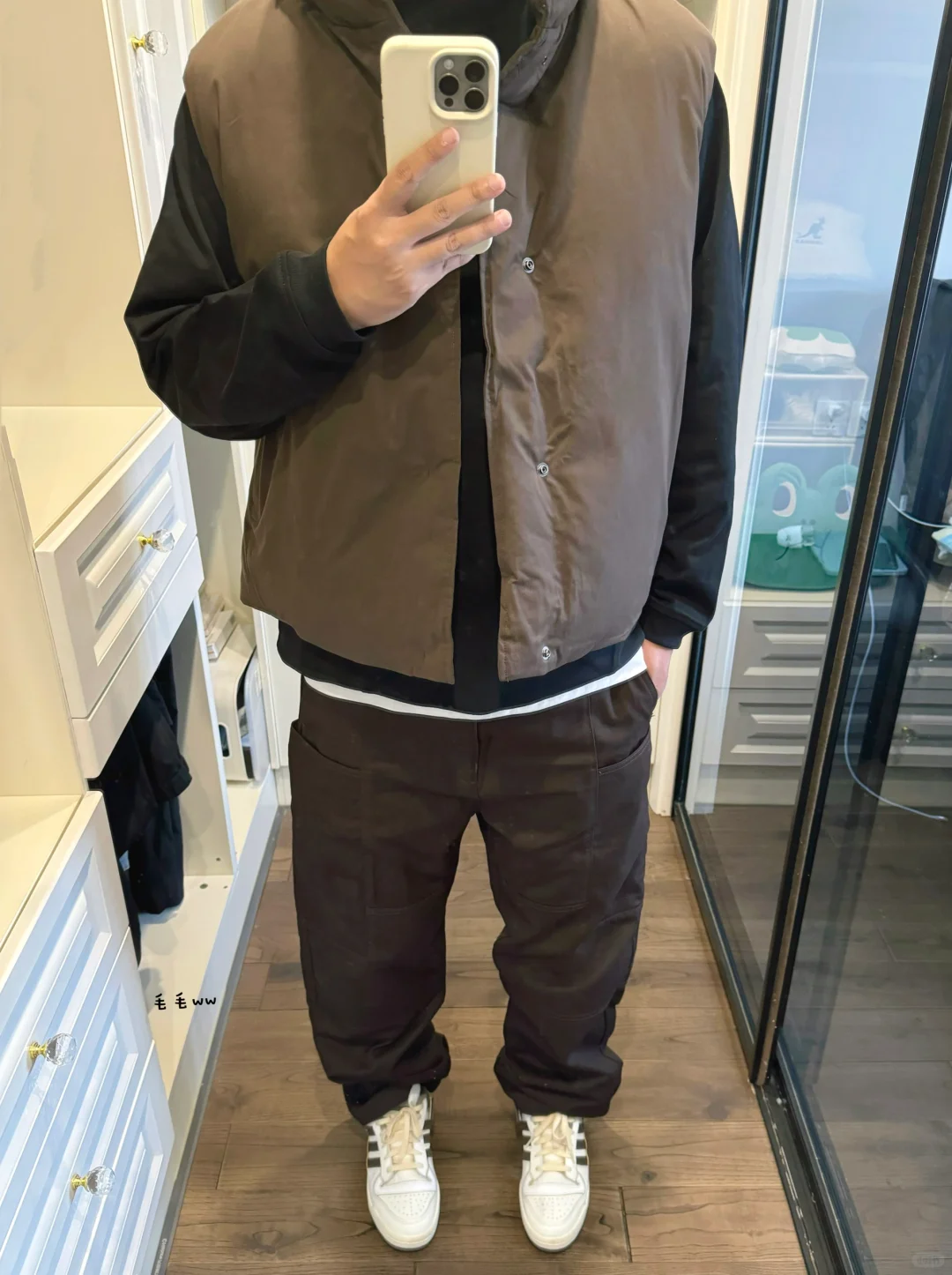 -之前搭配过U系列的空气棉服,本期同样是pufftech马甲,浅聊下穿着体验: . 1. 保暖性能不错,虽不是羽绒但够暖 2. 短宽版型,尺码偏小,小细节可以 3. 配色推荐褐色,很正的巧克力色系 4. 搭配属性拉满,马甲层搭可以试试 . —————— . ✏️本人178cm75kg 球鞋尺码265mm(正常EU42) . 💭以上均为我个人观点,不喜勿喷,欢迎讨论。