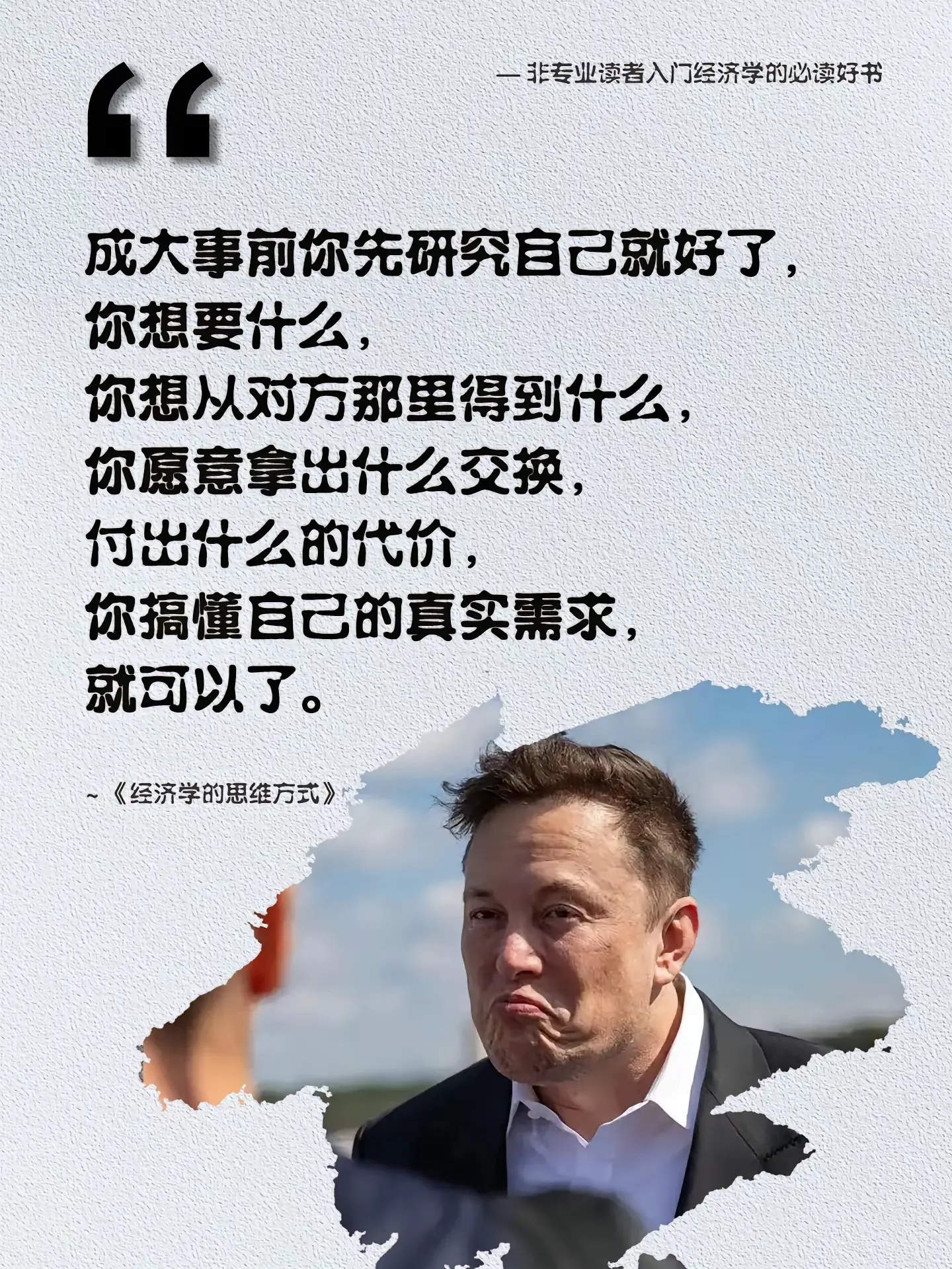 欲成大事者,都在研究些什么?搞钱先搞脑,任何想 搞钱的年轻人,都应该读读这本 《经济学的思维方式》,来纠正自己的经济思维。每页都能颠覆你的认知,手把手教你看透社会运行规律,读懂人性,打开全新的视野。经济学作为一种独特的思维方式,与生活中的各种决策息息相关。这本书帮助我们更加理性的思考和权衡不同选项之间的成本,最终帮助我们过上更好的生活。