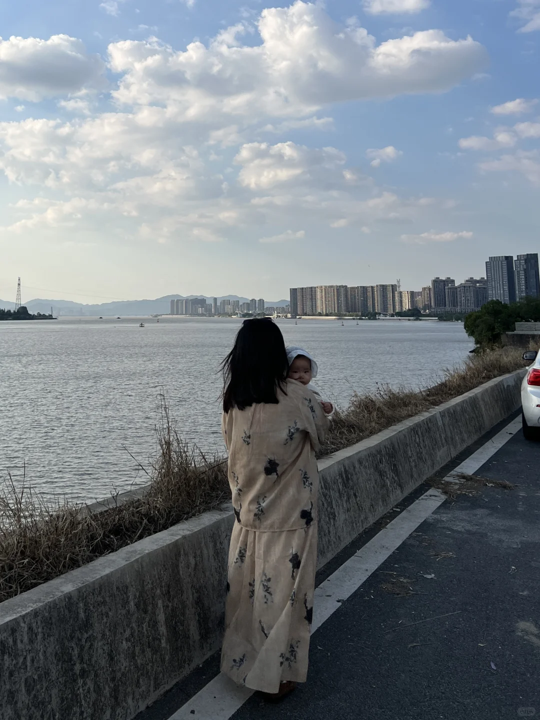 曾经和老公一起拍情侣照、婚纱照的地方 如今带着宝宝来拍亲子照啦 我永远爱这片江景 只是最近附近有个小工地在施工会有点灰尘 等完工之后再带着宝宝来玩