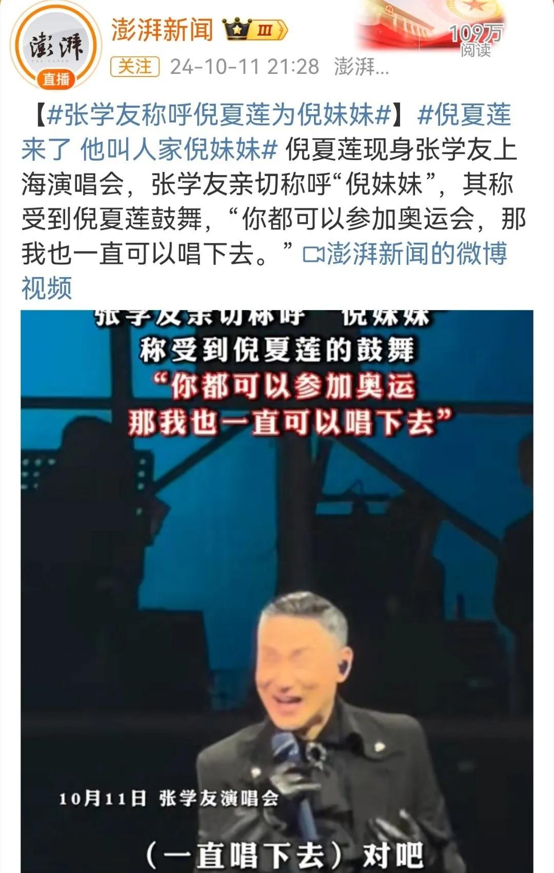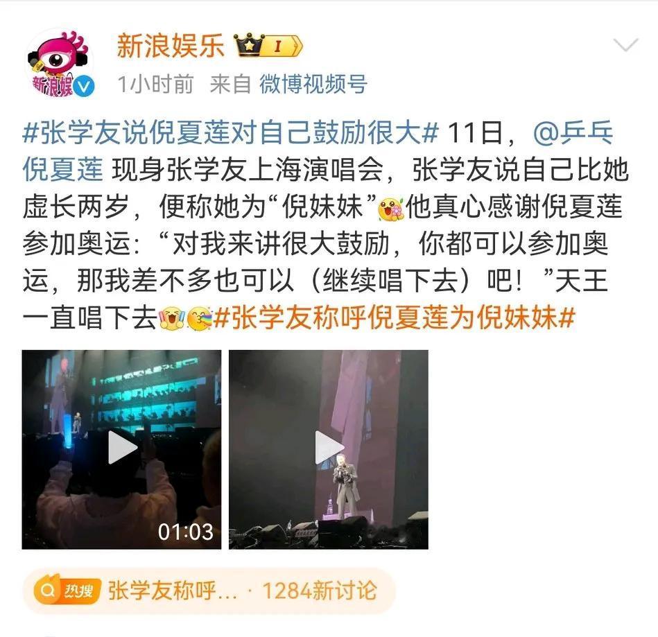 天啊,张学友居然叫倪夏莲“妹妹”! 一个积极乐观打乒乓,一个深情不变把歌唱,真的是想不到倪夏莲居然比张学友还小两岁。 要是这样的话,还真的是还能打好几次奥运会呢,张学友当然也不会老啊,两个人互相激励,不是比老,是比着年轻啊,这种感觉真的很好! 倪夏莲现身张学友上海演唱会MCN首发激励计划