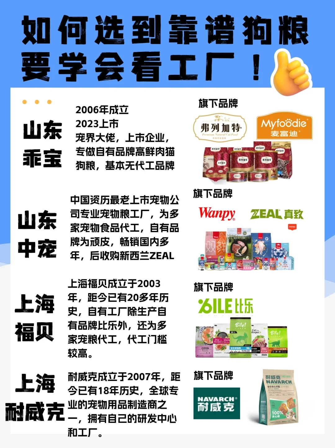 答案很简单,尽量避免代工厂,选择自有工厂并优先选择有一定年头的狗狗品牌。