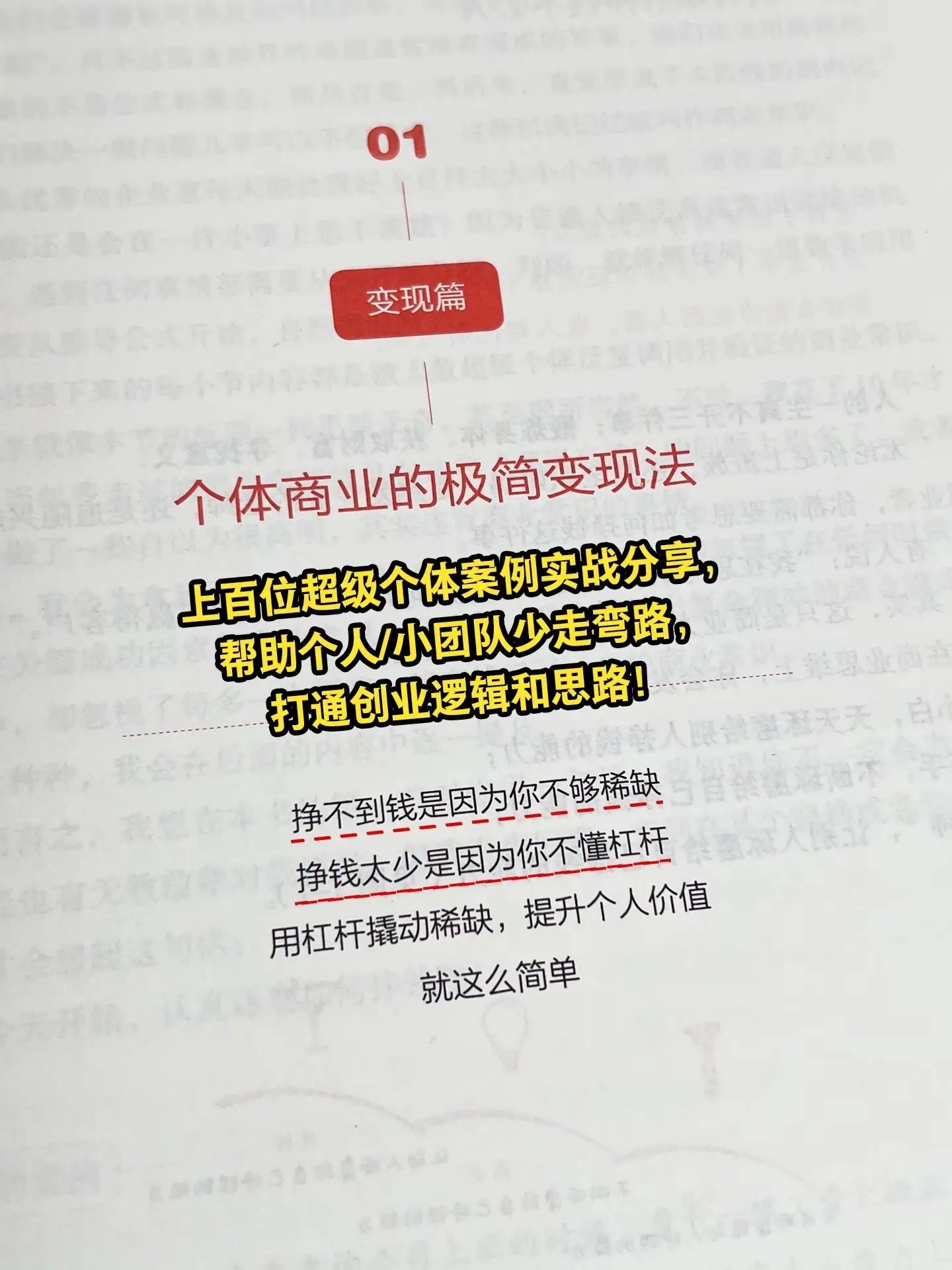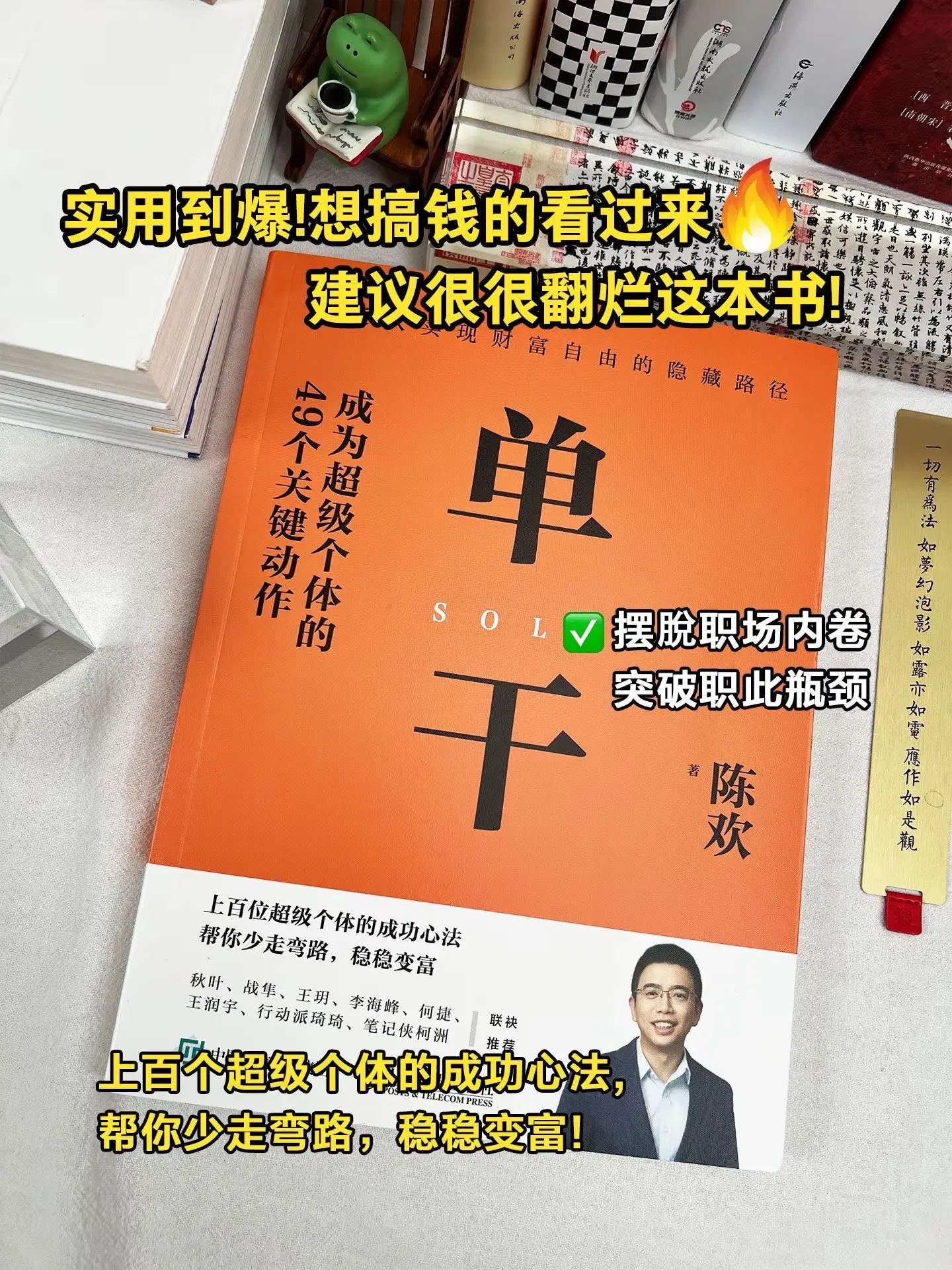 在这个瞬息万变的时代,打工不再是唯一的出路,个体时代崛起,普通人搞钱的机会来了!《单干》一本教你如何将能力转化为财富的指导手册,作者花了3年时间对上百位年入百万的普通人做了 深度访谈,总结出了他们成为超级个体的变富秘籍,提炼成5项核心能力,49个关键动作,帮你摆脱职场内卷,突破职业瓶颈,少走弯路,稳稳变富。赚钱思维认知觉醒单干