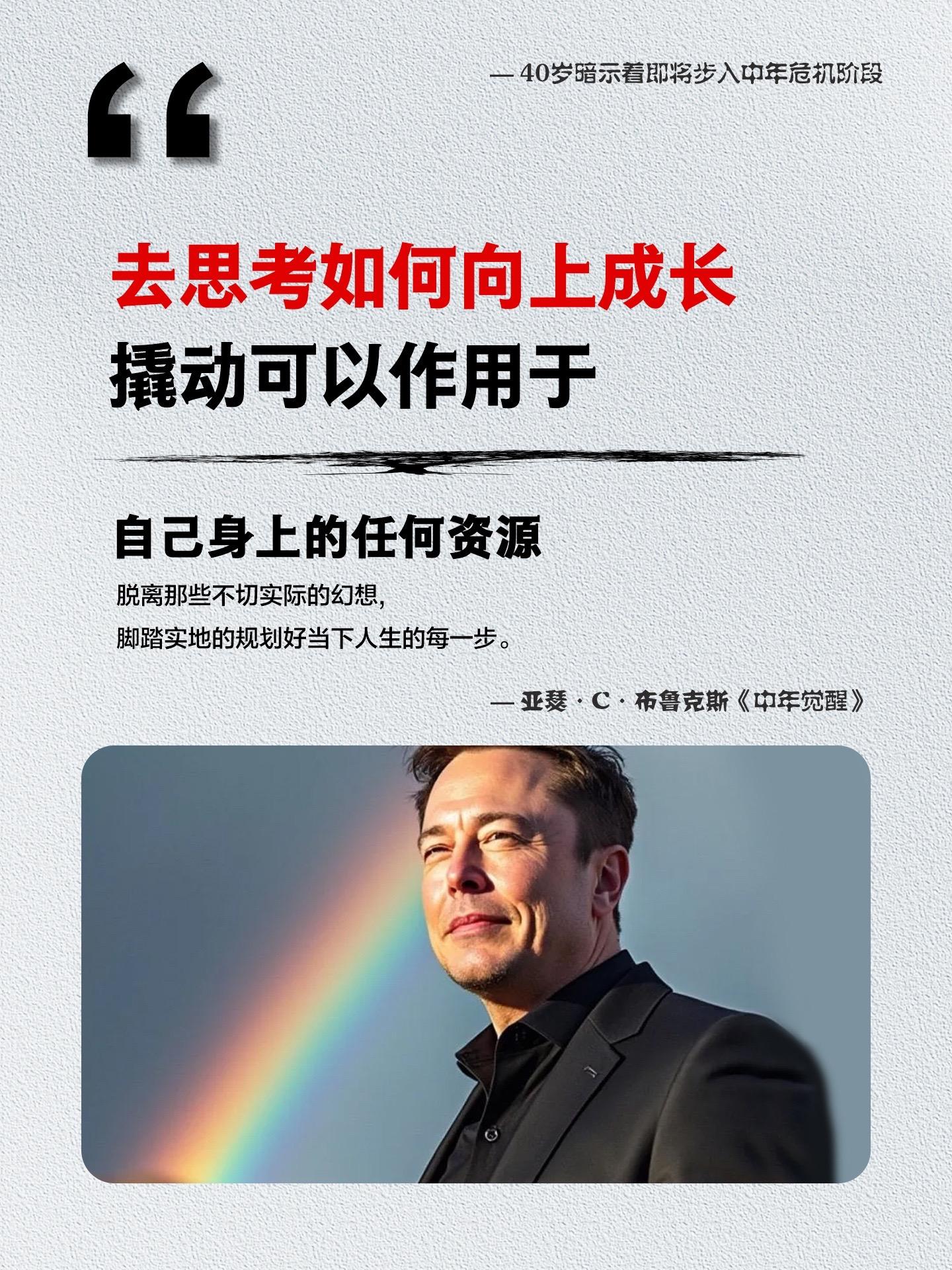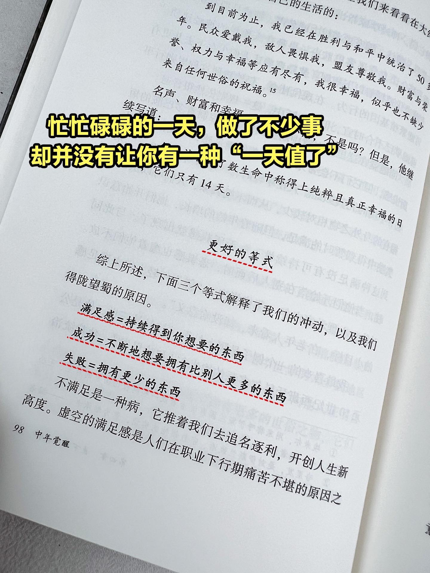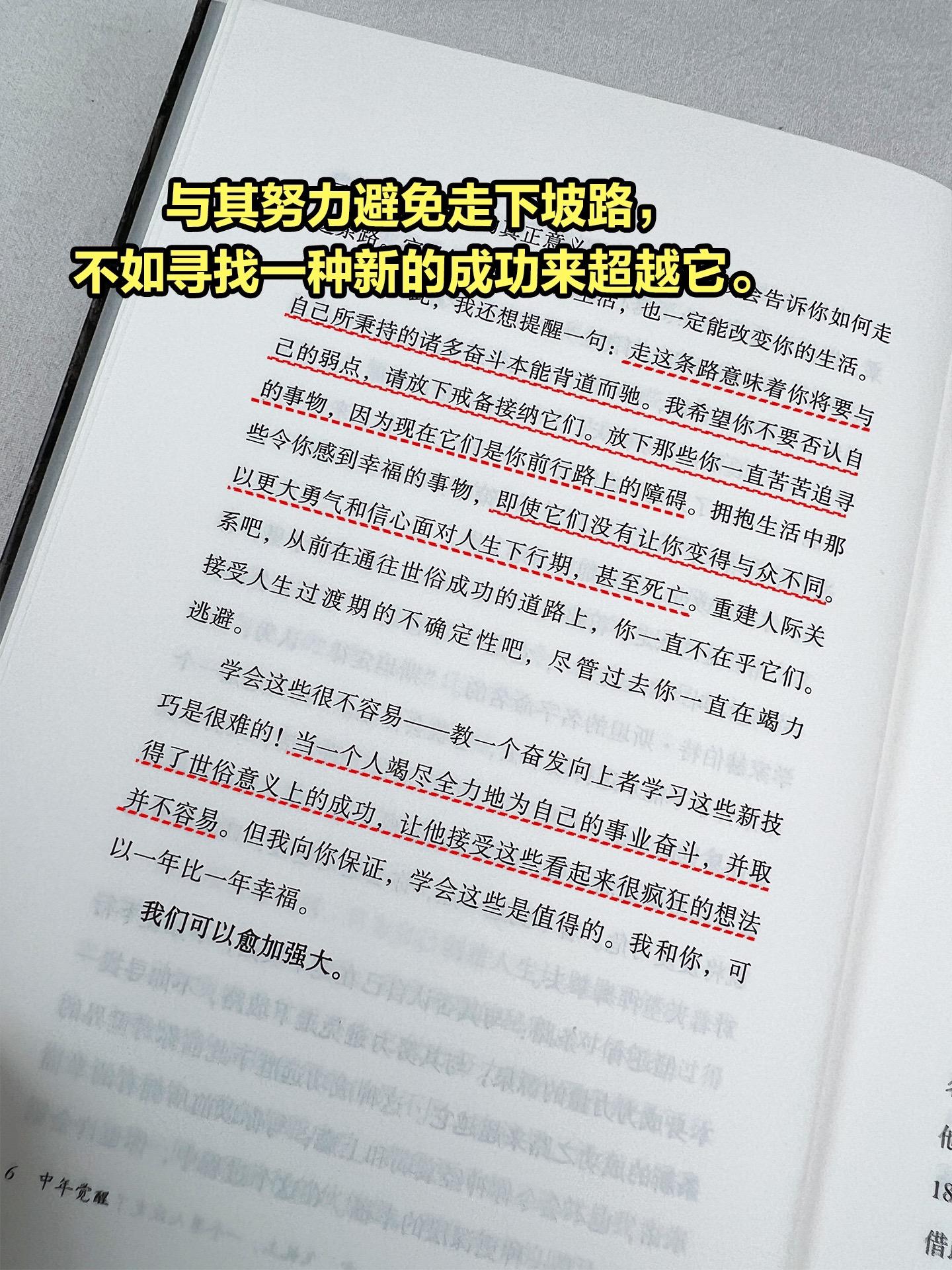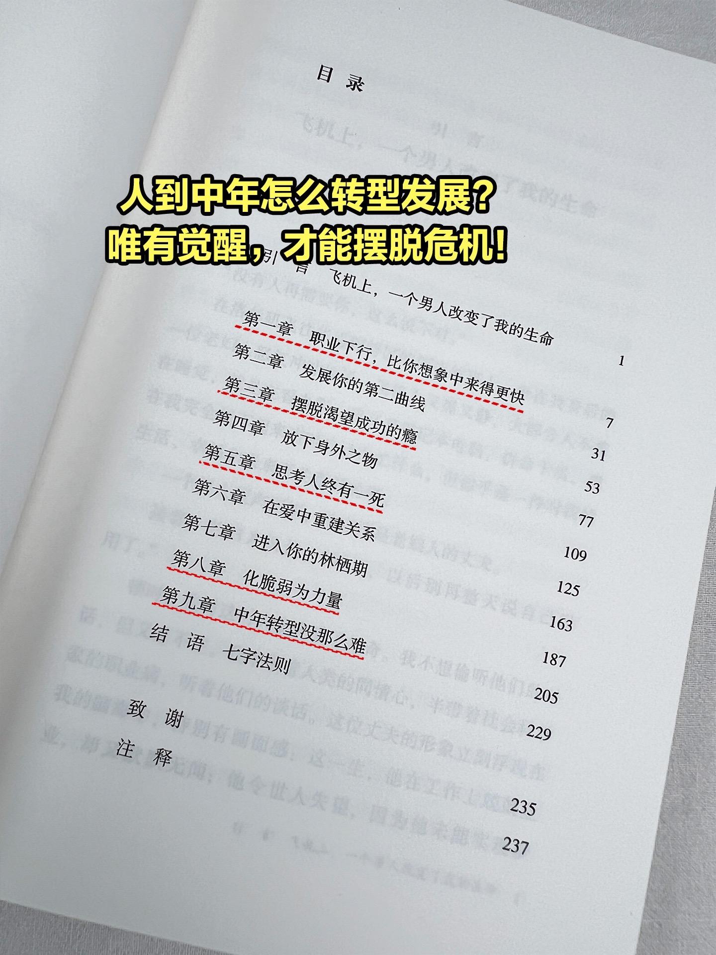 人生没有定义,中年也会再次重生!被点醒了,庆幸在36岁前读到这本《中年觉醒》。一本能给予人力量与启示的书,具有很强的现实意义,聚焦中年危机这一普遍问题,深入探讨了职业下行、对未来的恐惧等困境,能让中年读者产生强烈共鸣。提供了实用建议,比如转换思维定式、发展晶体智力、识别长远目标等,为中年人应对危机、开启人生新方向提供了切实可行的方法。启发思考人生价值,引导读者重新审视成功的定义,不再单纯以事业成就来衡量,而是关注幸福、爱与信仰等元素。 作者利用社会科学、哲学、传记、东方智慧,以及对成功人士的数次采访,向我们