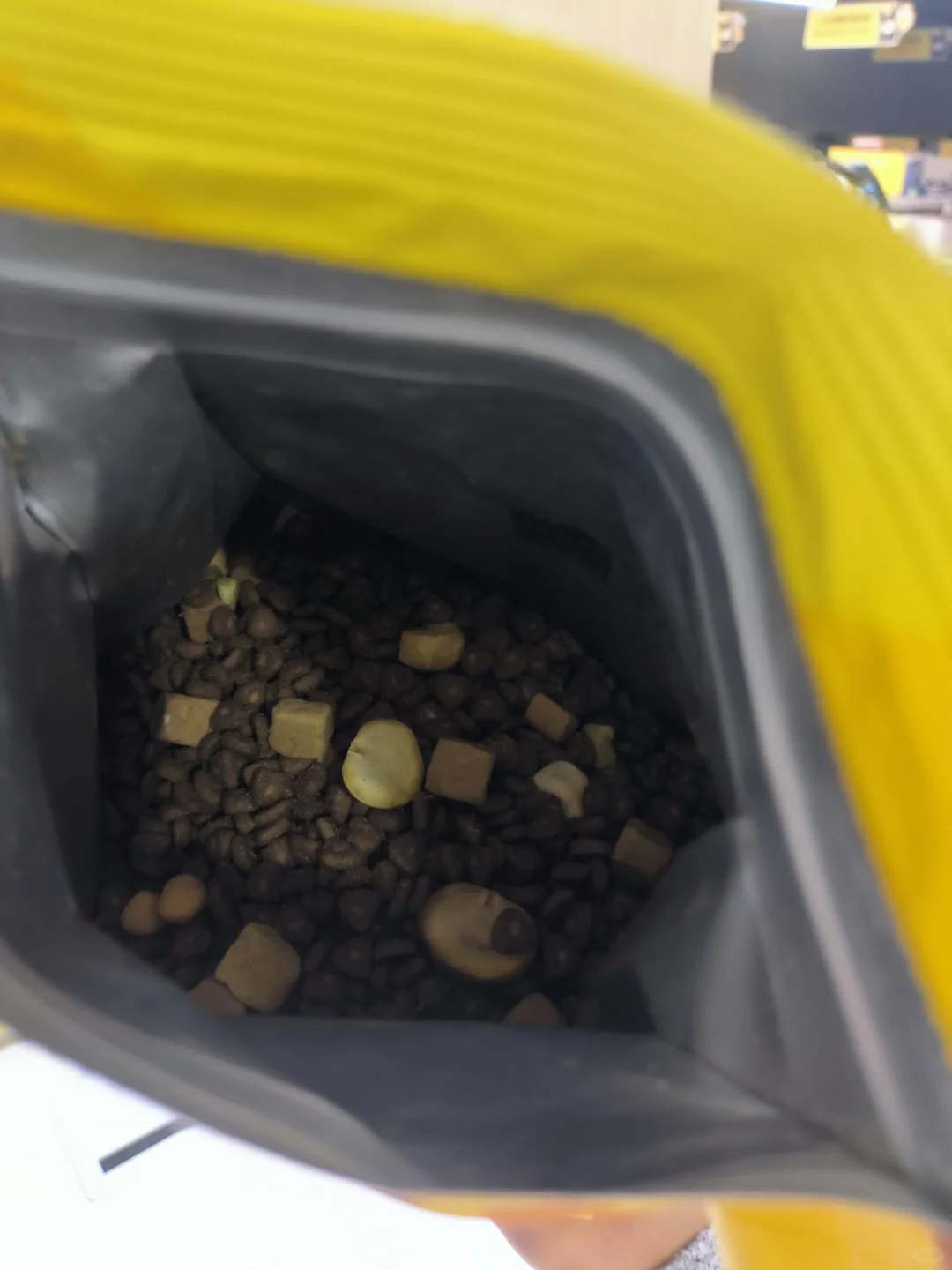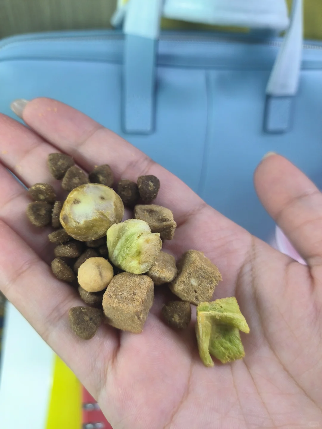 这一段时间的乐趣是上班摸鱼挑狗狗用品,虽然说踩的雷不少,但是也挖到了宝。 和大家分享一个狗粮,是疯狂小狗的,我家之前买过其他味道的狗粮,已经快吃完了,这次又买了一个新味道,秋冬限定的款,是栗子和鸡肉的组合,拆开袋子就看到很多冻干,有肉有菜,还有很大块的板栗,我家狗很爱吃这个板栗和另一个奶酪的冻干,颗粒和之前的一样是有肉夹心的,摸着不油,吃了一周了,从换粮到现在都没有任何不舒服的,感兴趣的可以放心冲