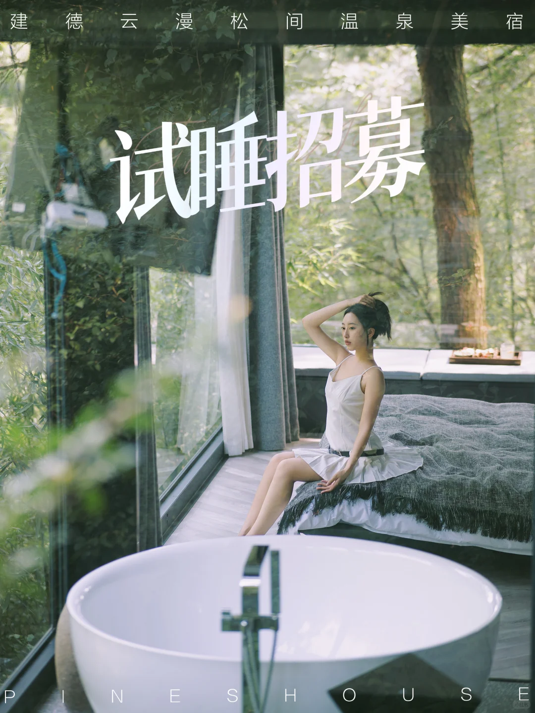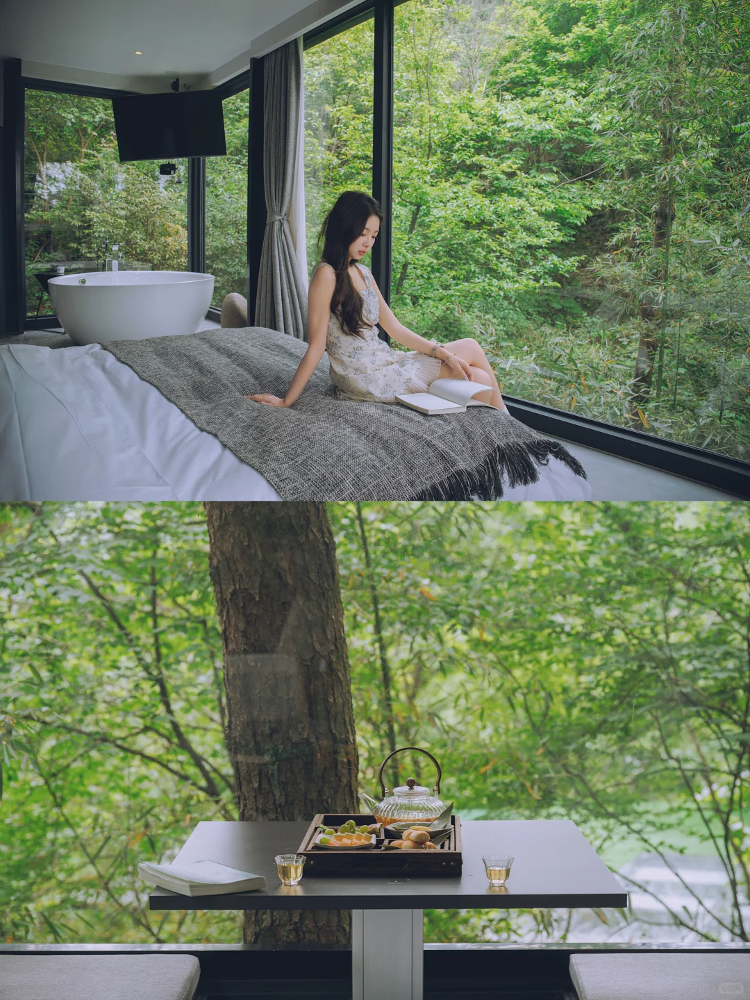 ▪️民宿共15间客房,面朝山野的大面积落地床🛌躺着就能看见森林云雾☁️而且大部分客房都自带超大浴缸~