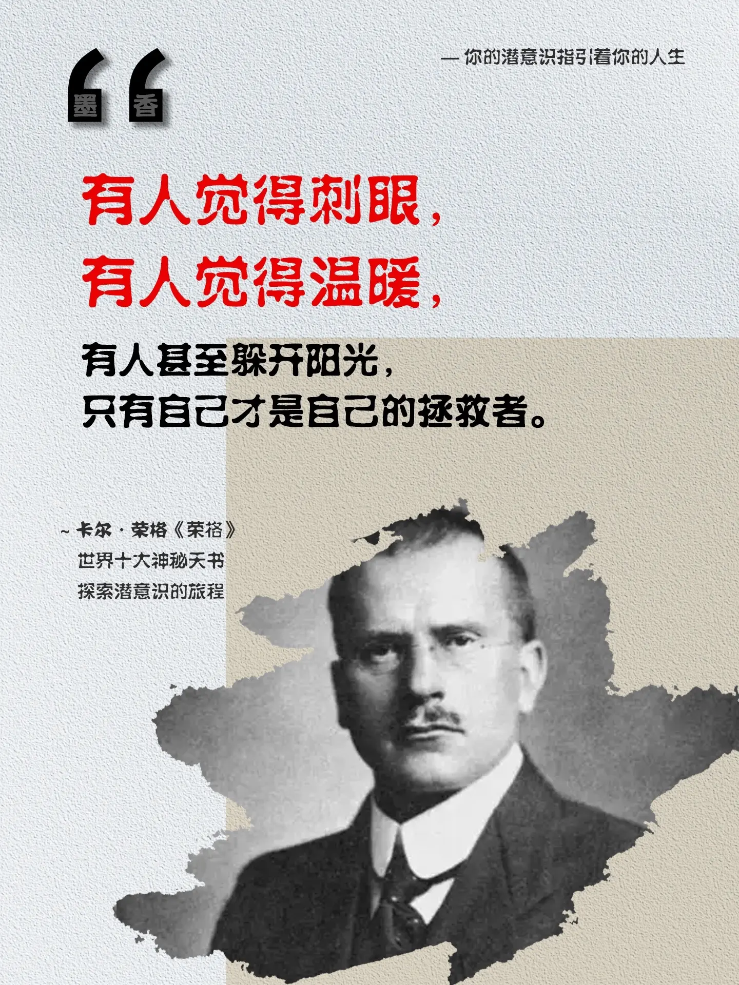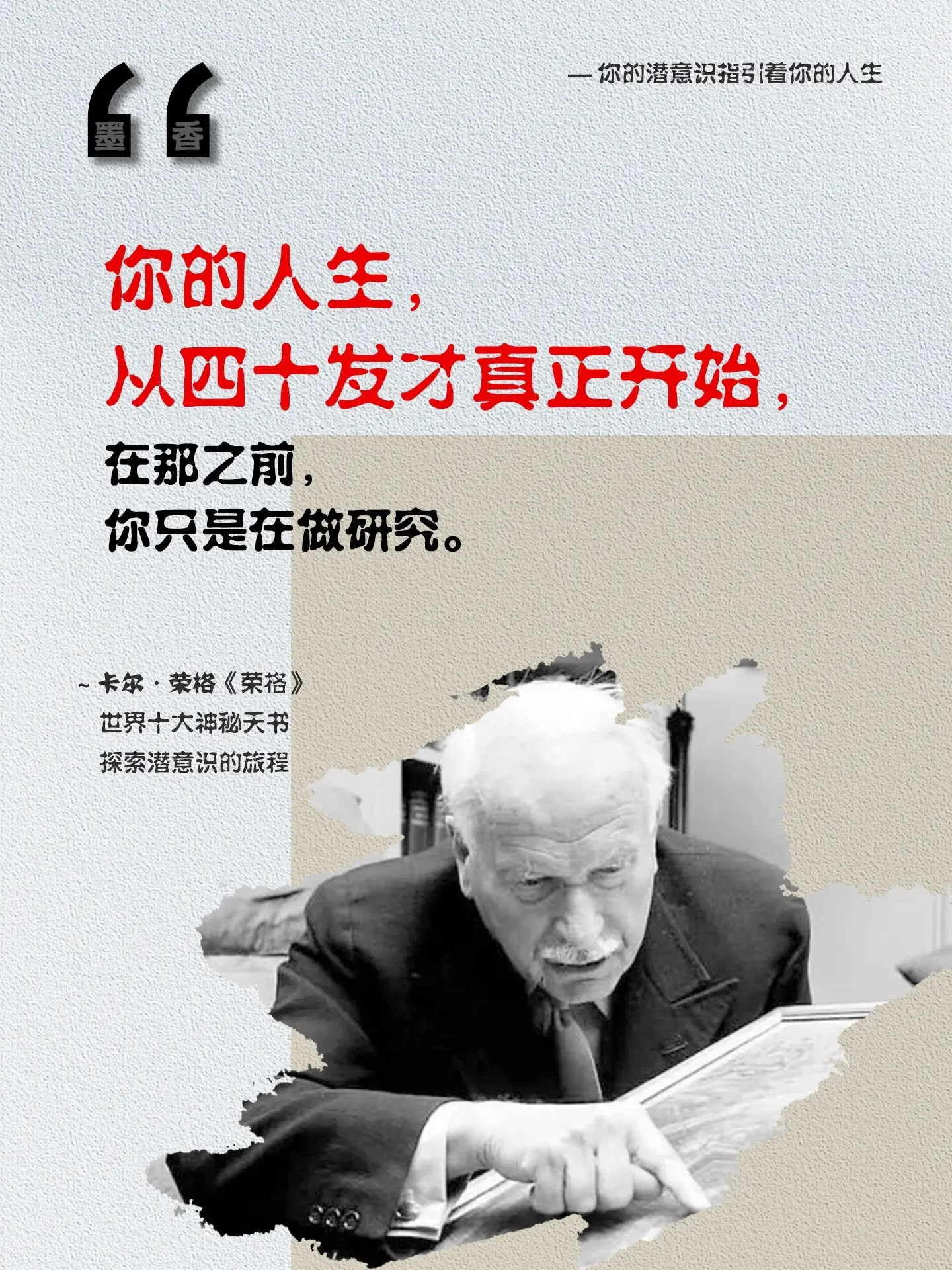 人有两次生命:第一次是活给别人看的,第二次是活给自己的。你的人生从四十发才真正开始,在那之前你只是在做研究。读完《红书》看自己、看世界就像打开了上帝视角!心理学大师荣格核心之作,看完就像经历一场心灵的淬炼。书中记载着荣格早期的个人梦境、灵魔及精神追寻之路。读完后可以与深层的自己对话,得以倾听内心的呼唤,并且一直激励着我去探寻内心的真相,不断提升自我。读懂命运就能救自己千千万万次!