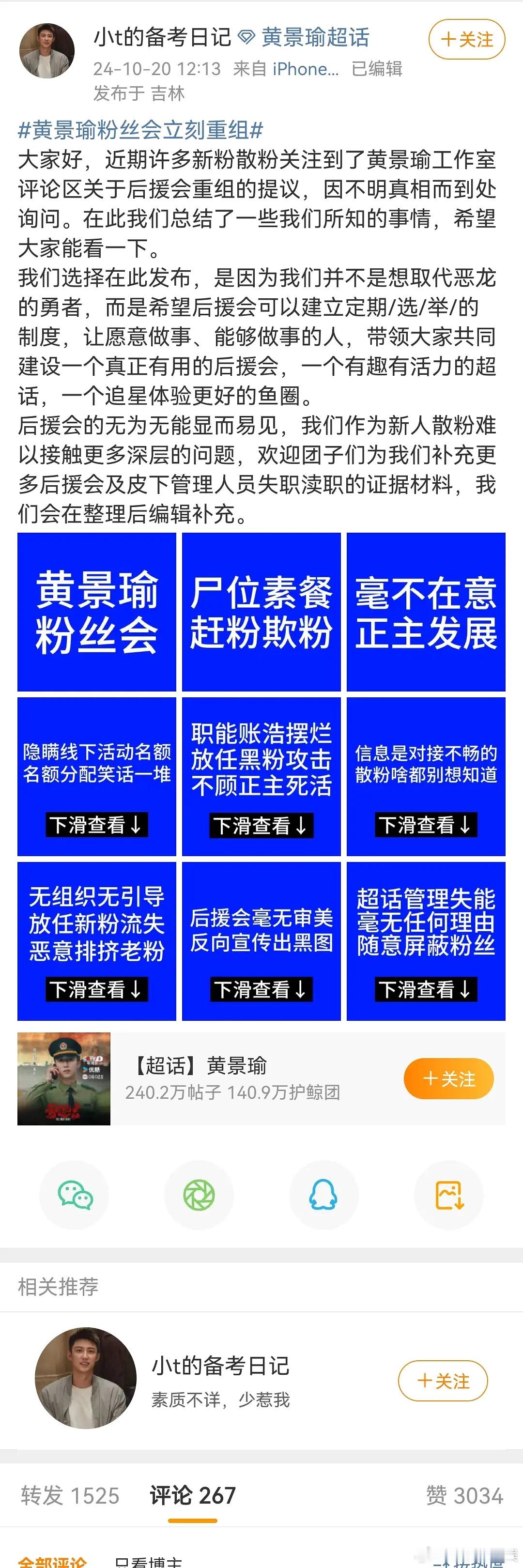 黄景瑜粉丝正在要求后援会重组,准备洗洗当大ll了?之前🍷家也走过这个流程
