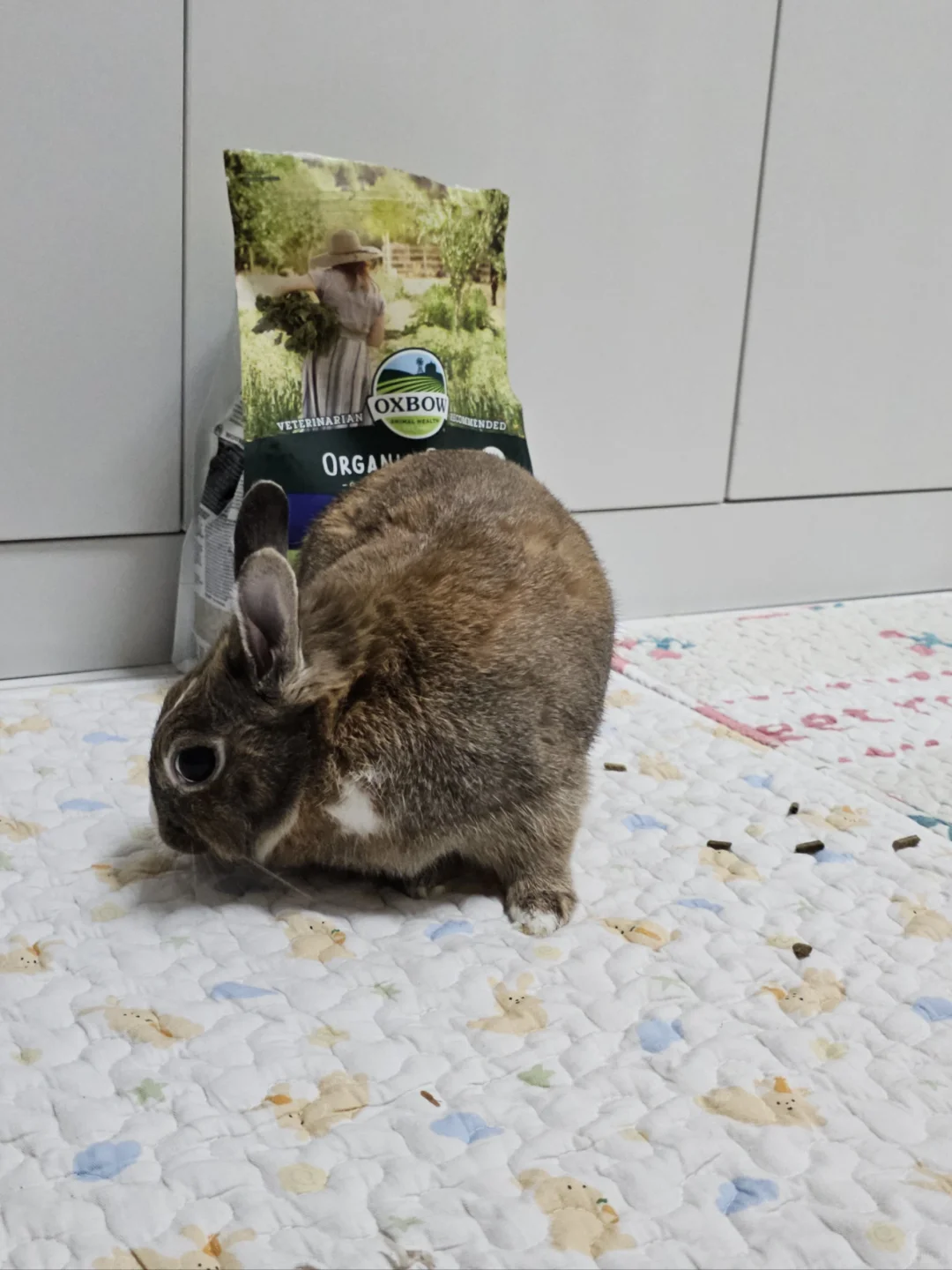 兜兜转转,俩兔五岁多了,崽崽的肠胃最近这一年都不太好,一直有黑水软便且拉屎经常大小不一,威霸淀粉含量太高,加重她肠胃的症状,为此也减少了她的兔粮饲喂量。但是年纪变大,光吃草的营养也不够,所以最后还是换回了爱宝!