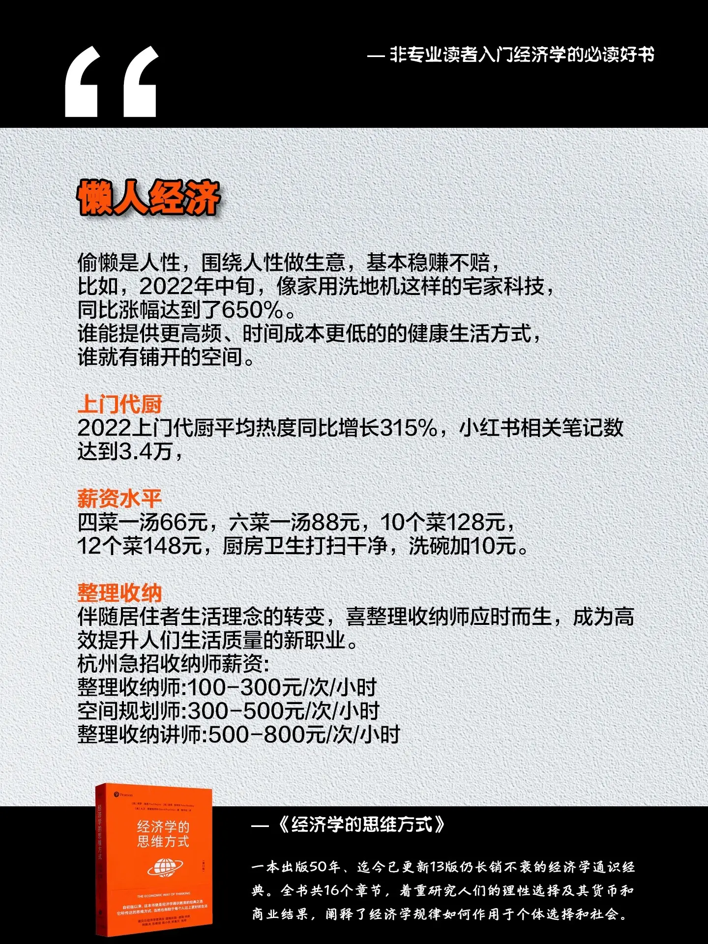 莫欺少年穷!醒醒,该你发财了!!任何想搞钱的年轻人都应该读读这本《经济学的思维方式》,不愧是出版50年,更新13版,仍畅销不衰的经济学神作!!读完教你看透社会运行规律,每篇都是案例,教你读懂人性,摆脱穷人思想,打开全新的视野。懂得什么时候出手,什么时候等待,因为每一个经济周期对普通人来说都蕴育着机遇与财富,原来懂点经济学是真的很有用!