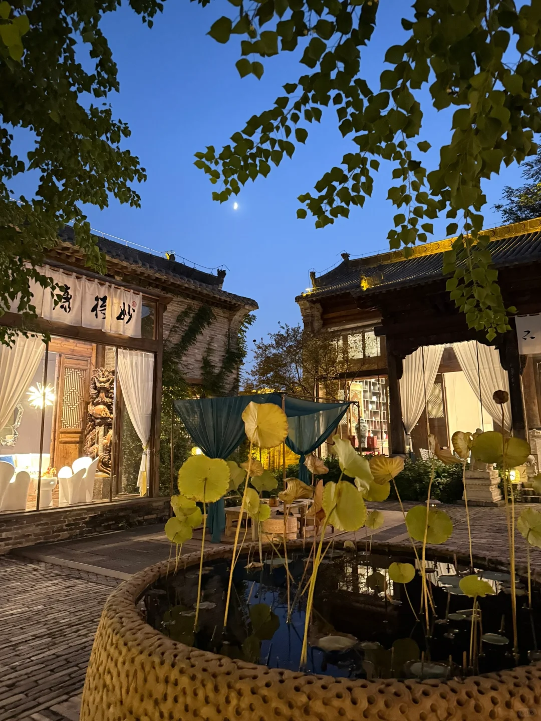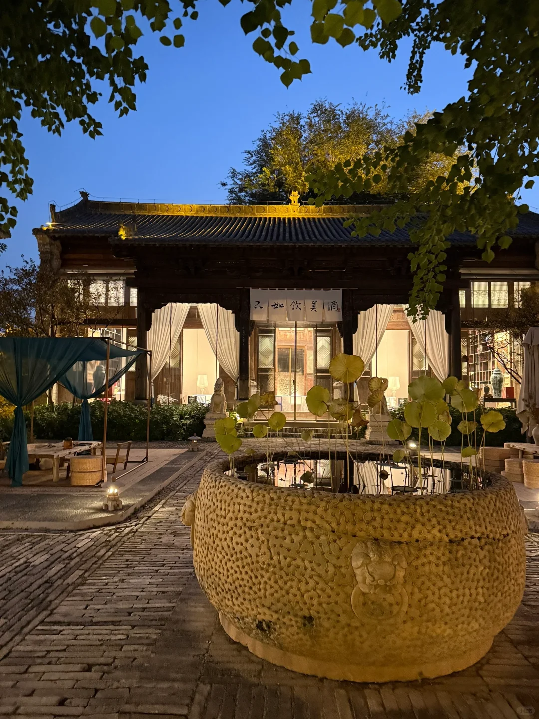 东方美学,果然没让我失望的地方! 其实我本来预约的是今年五月份🍃 因为当时回国之后发烧生病延后! 这个文化酒馆,当初看到时候还纳闷郑州怎么有这样的建筑!来这之后知道这家文化酒馆🏮老板是把自己收藏明清北方建筑一砖一瓦建在这里! 意外很出片也拍到蓝调时刻!📷 📝这里目前还是预约制,一天只接待固定人数下午茶,跟用餐,很好的还原院子本有的氛围同时保证用户的私密性! 天气好约上朋友在院里喝喝茶聊聊天,在院里晒着太阳🌞发发呆,把我能量也能充满的地方! 听说这里下雪时也很美,下次我应该还会来!