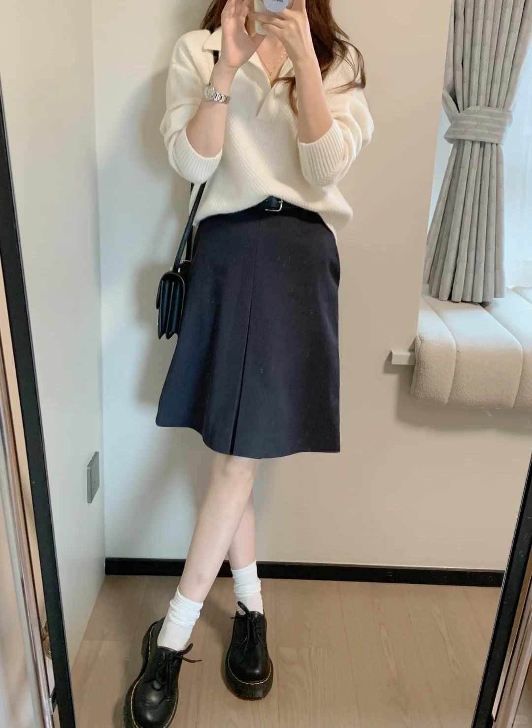 早晚温差大的,毛衣配裙子 一套好减龄哦~