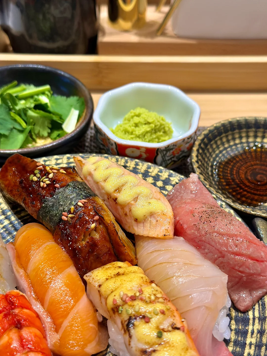 这是广州 不是东京~ 可以看落日夜景的日料理店.. 这里吃饭真的太美了和风庭院景观, 还可以换上店里的和服打卡拍照! 体验感真不错😄氛围感拉满~ 🍣三文鱼手握寿司就不用多说了真的很新鲜,口感绵密带着一点甜味 🐟金枪鱼大腹寿司入口即化,油脂在口腔融化太满足啦 🥩和牛寿司 肥而不腻一口下去,还有淡淡的奶香味~ 🏠泓松臻品·五感料理(琶洲店) 🚥琶洲大道168号星河湾中心 4F